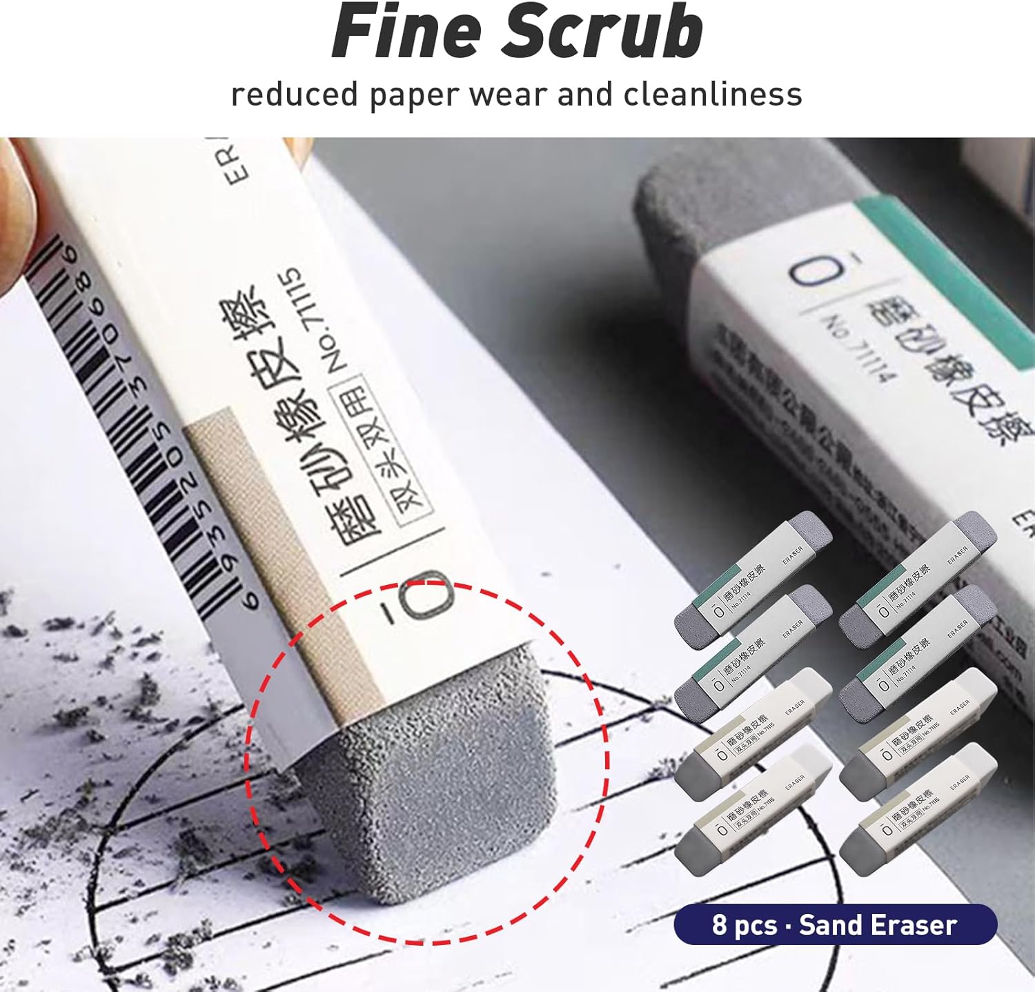 - Experience smooth erasing with the Sand Eraser 8-Pack, the go-to choice for a reliable and effective ink eraser for paper and colored pencil eraser