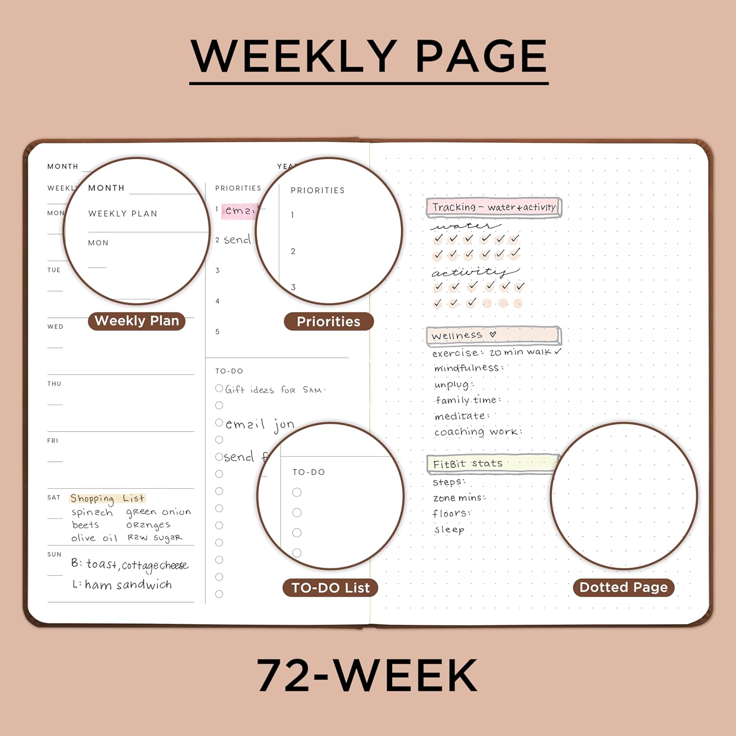 - 【72-WEEK PLANNER】Comes with 72 weeks of weekly pages, our daily & weekly planner provides a fresh start for an entire year at any time! With its convenient 5.7" x 8" size, it's your perfect on-the-go companion.