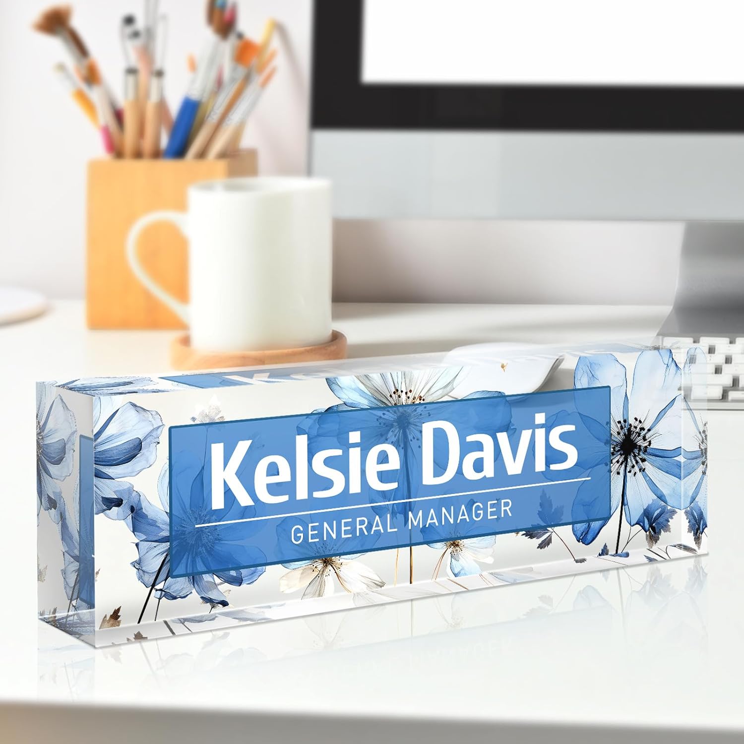 - 🎆【Personalize Your Unique Acrylic Name Plate】 Click The "customize Now" Button And Choose Your Desk Plaque Style And Font. Then Enter Your Custom Message. Please Make Sure All Text Is Correct. We will Print your name plate Design on our acrylic glass block which create a mesmerizing piece you could not take your eyes off. It will also win you over from your colleagues