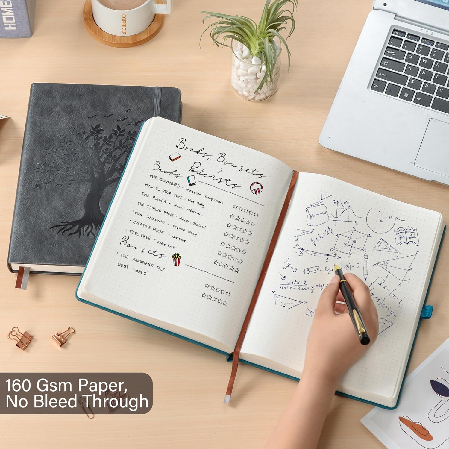 ZXHQ A5 Bullet Dotted Journal Notebook - 150gsm Thick Paper, 256 Pages, Dot Grid Hardcover, Tree of Life Design, Fine Inner Pocket - 5.9" × 8.5" Dark Grey