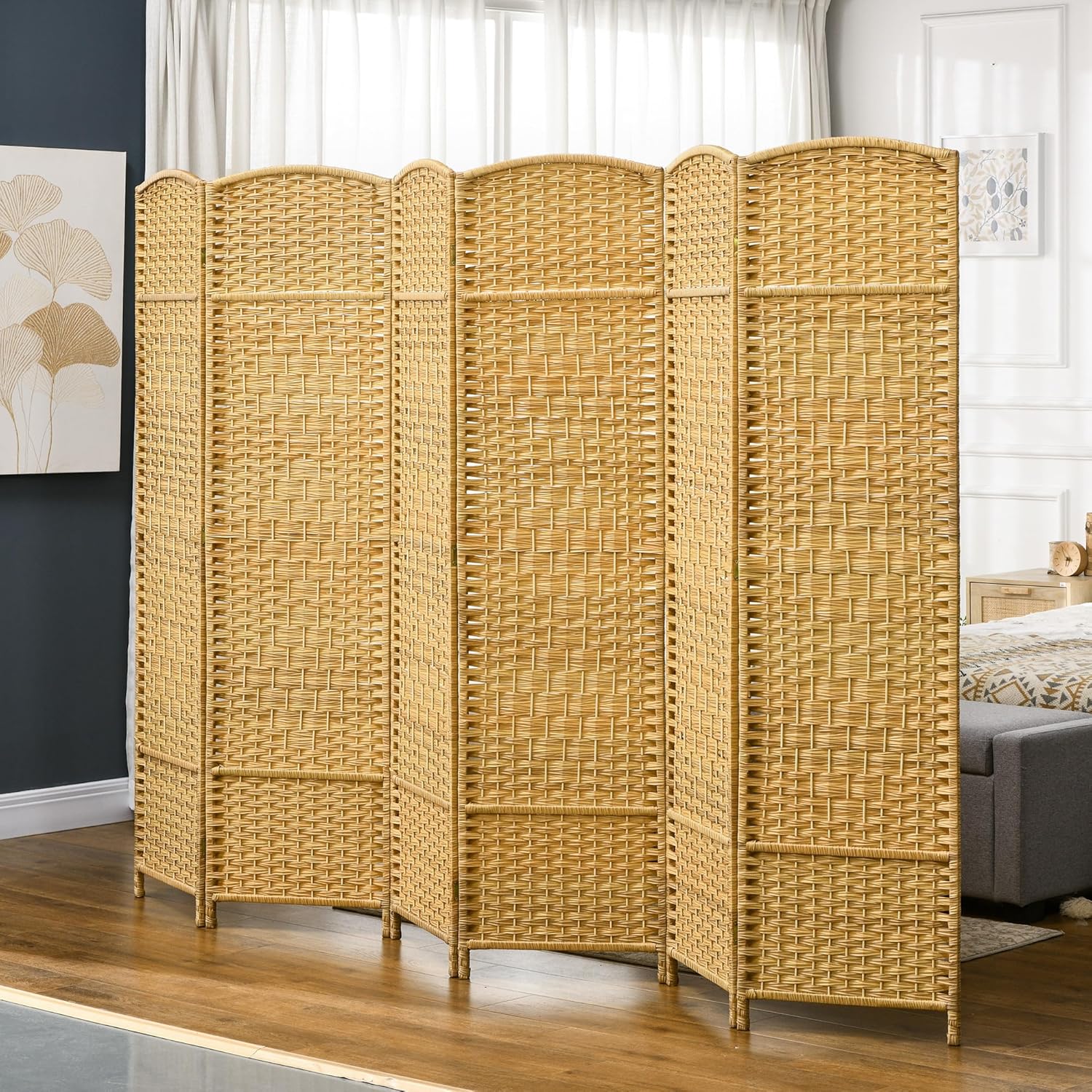 - Hand-Woven Style: Adorned with a stylishly woven pattern and a beautiful arched top, this divider for room separation adds a touch of natural beauty to your home, making it a great housewarming gift.