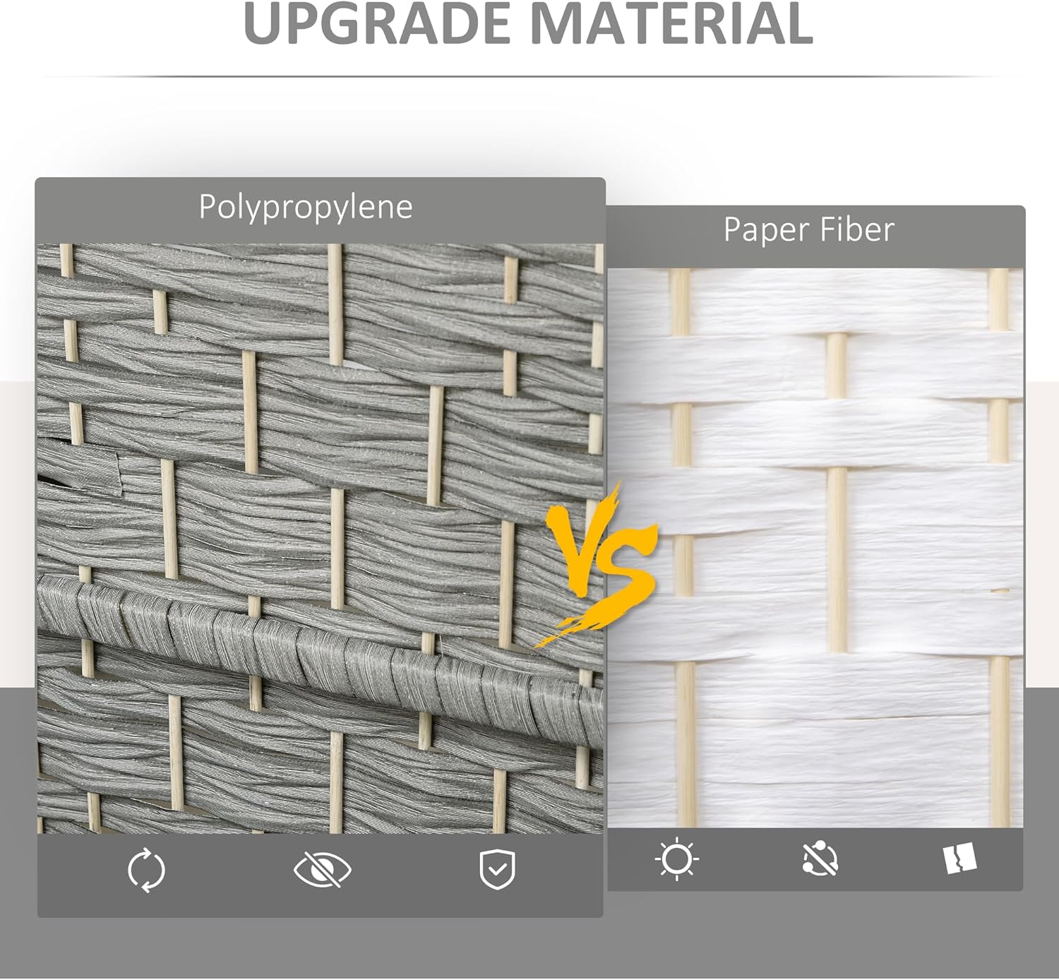 HOMCOM 6 Panel Room Divider, 6' Tall Folding Privacy Screen, Hand-Woven Freestanding Wall Partition for Home Office, Bedroom, Mixed Gray