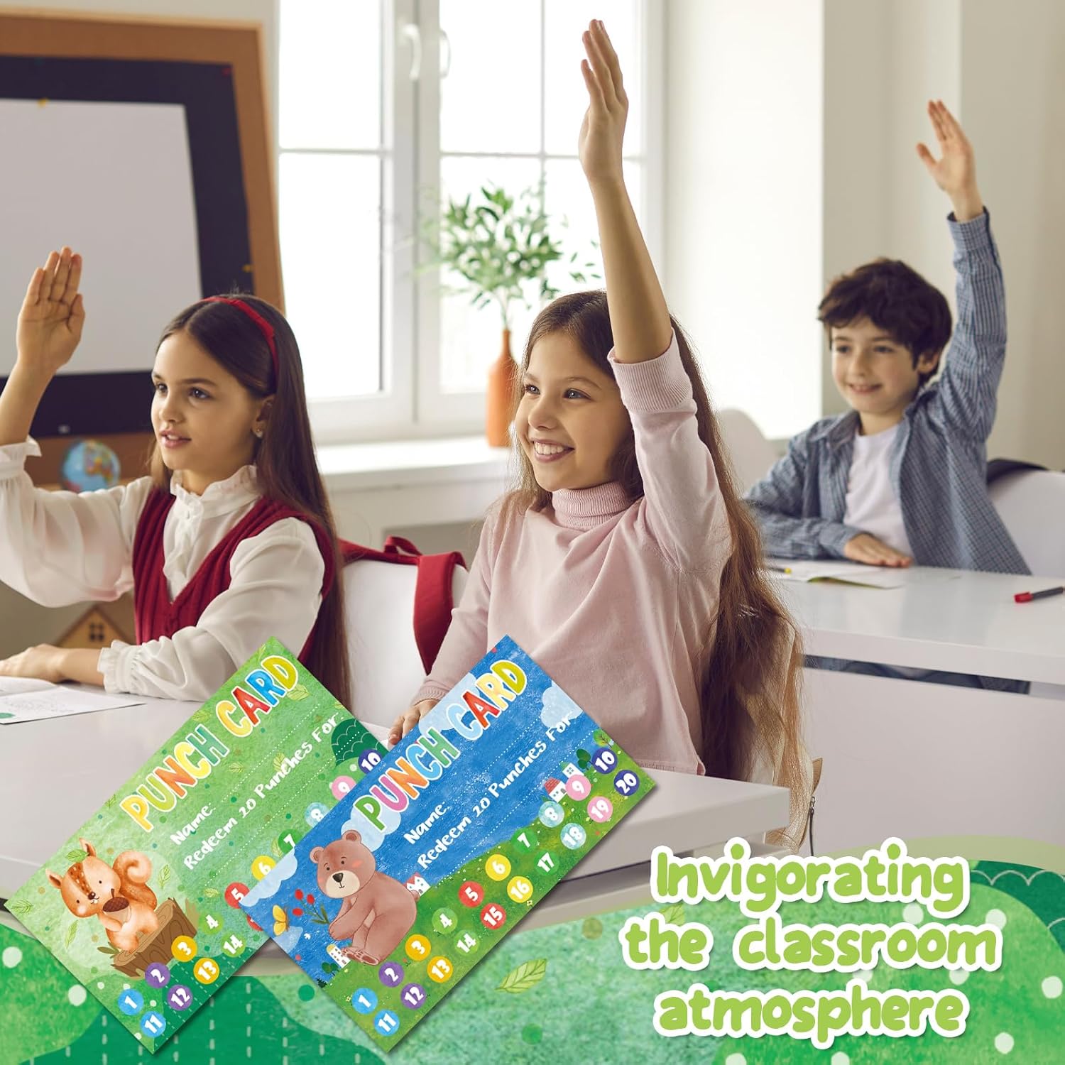 - Cartoon Animals Design: behavior chart for kids at home has 8 different cartoon animals styles with vibrant patterns and colors, printed with letters like 'punch cards', 'redeem 20 punches for', etc., simple and generous; Vivid and eye-catching, blank back design allows you to send other messages to students; Punch design 1 to 20 score, you can punch in according score