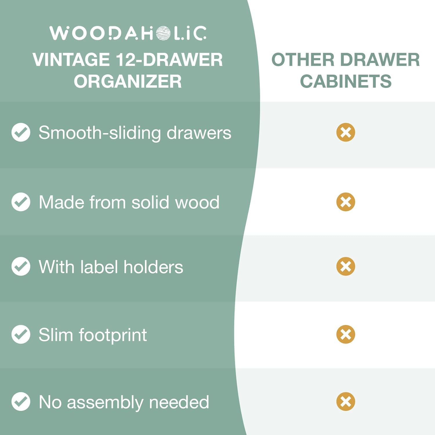 - The Ideal Gift for the Organized Enthusiast: Treat someone special to the Woodaholic 12-Drawer Apothecary Cabinet. With its charming design and practicality, it's sure to delight the meticulous organizer in your life.