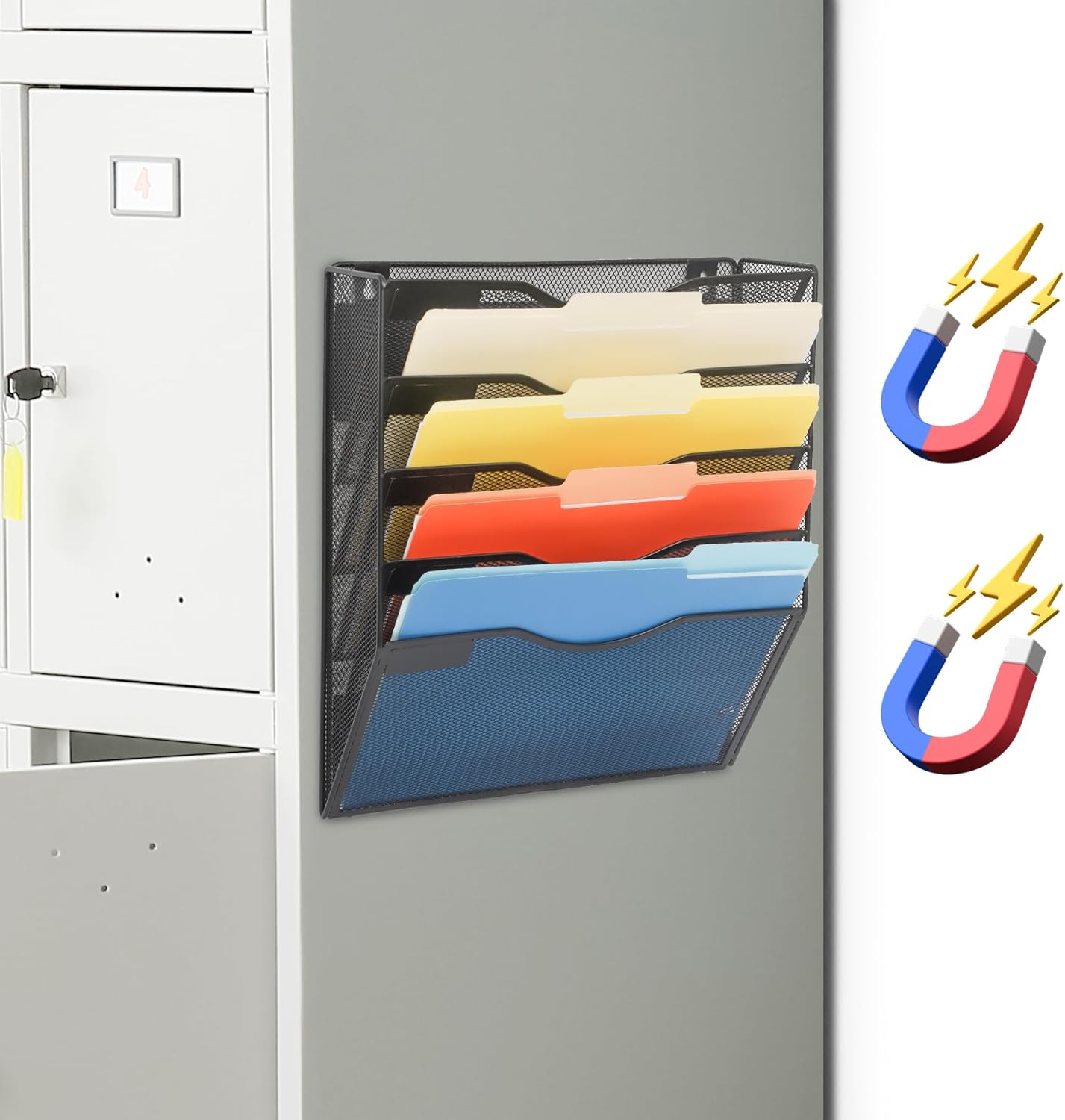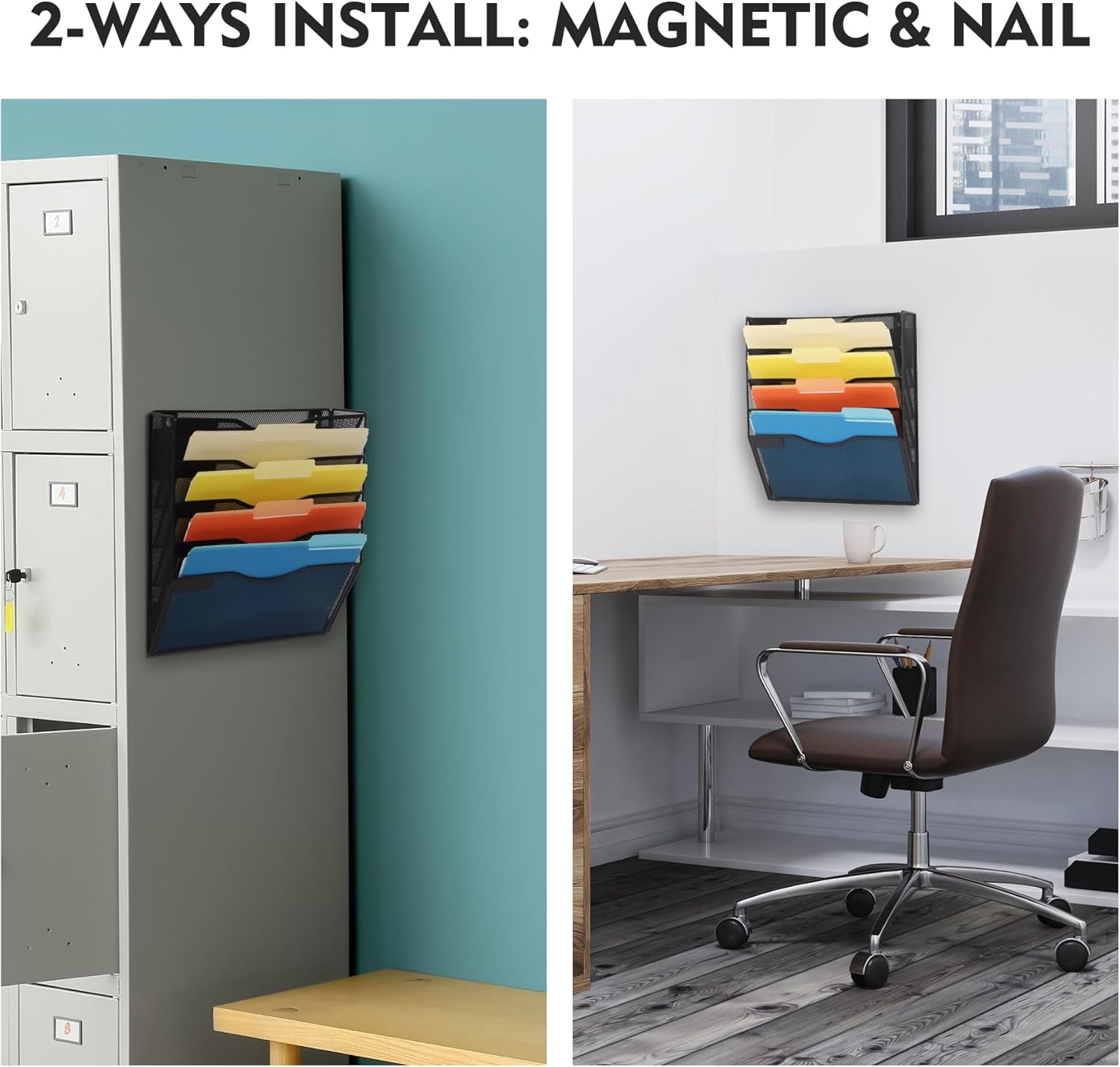 - 5 Pockets: The magnetic wall file organizer comes with mounting screws that can be easily mounted on the wall