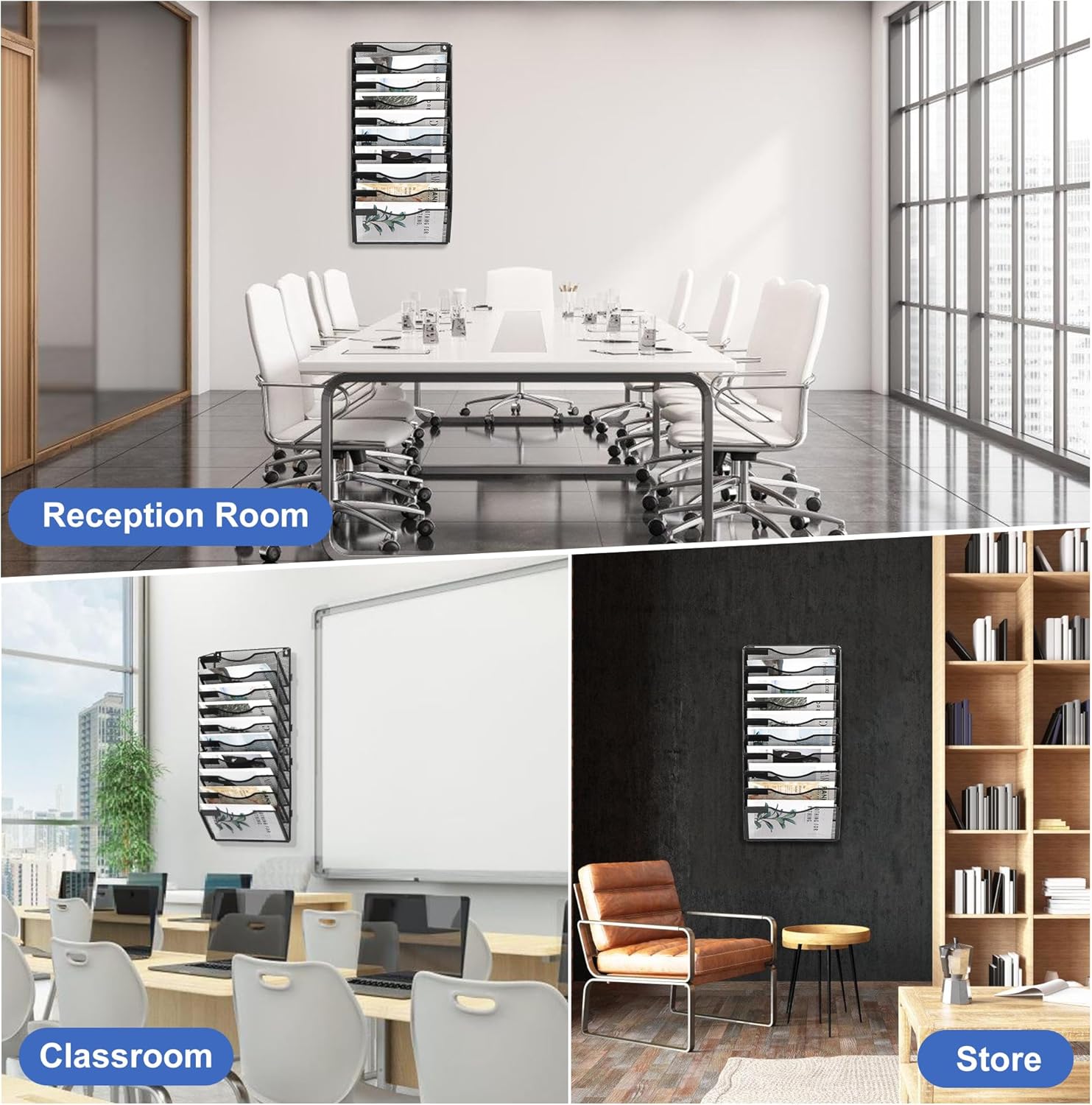 - Space Saving: 10 tier metal wall file organizer comes with mounting screws that can be easily mounted on the wall. Use your home or office space more efficiently by keeping your files organized and off the desk and workspace.