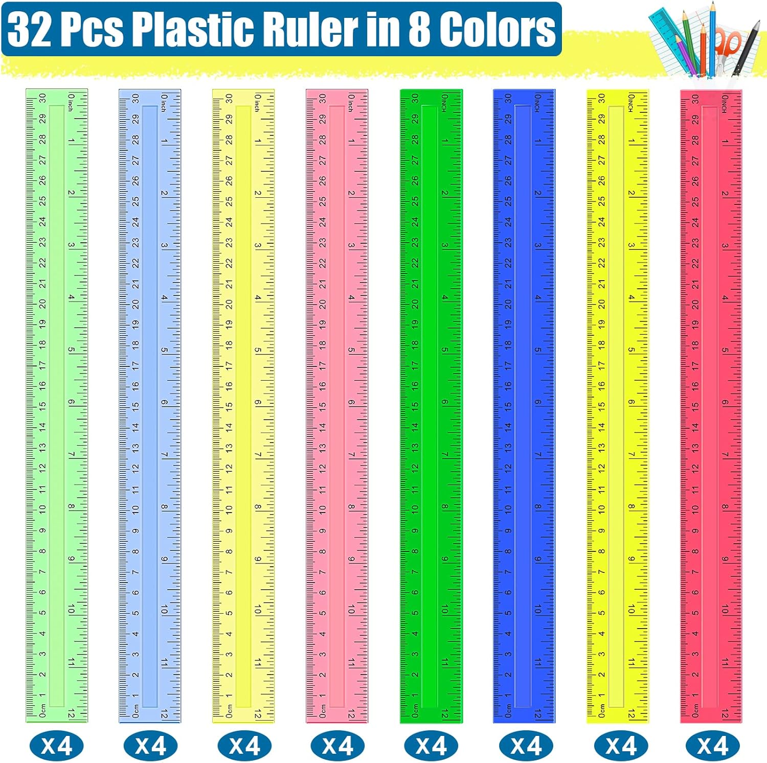 - Value Plastic Rulers Set: You will receive 32 pieces of rulers for kids, The size of this color ruler is 30.9 x 3.2 cm (L x W), 0.25 cm in thickness, measure range is 12 inches/ 30 cm.