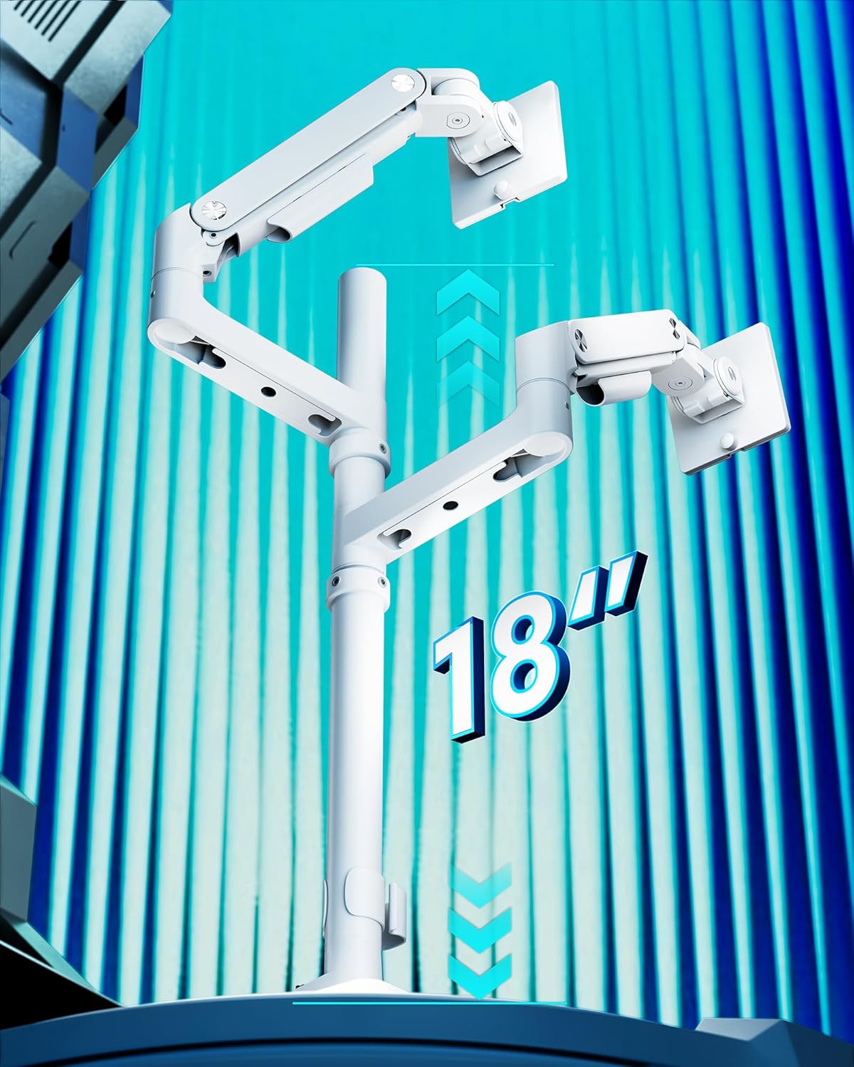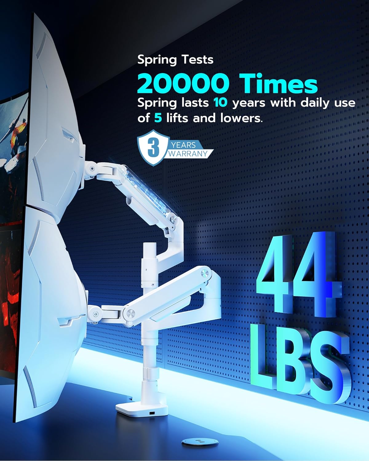 - 【Durability】Our dual monitor desk mount features industrial-grade gas springs, which eliminate the rebound problem common in standard stands, ensuring effortless adjustments. Tested over 20,000 times for stability even at full extension angles.