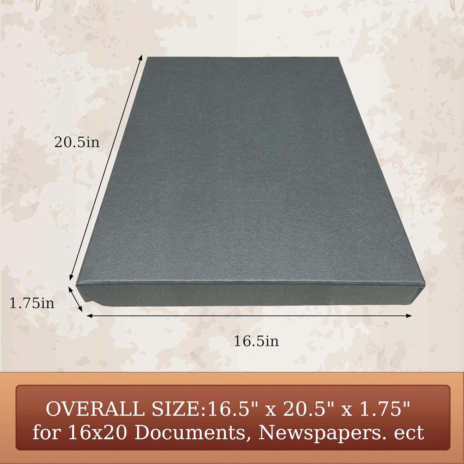 - Outside Dimensions: 16x20x1.75 inches. Archival clamshell box inside for 16x20 photos newspaper or other crafts