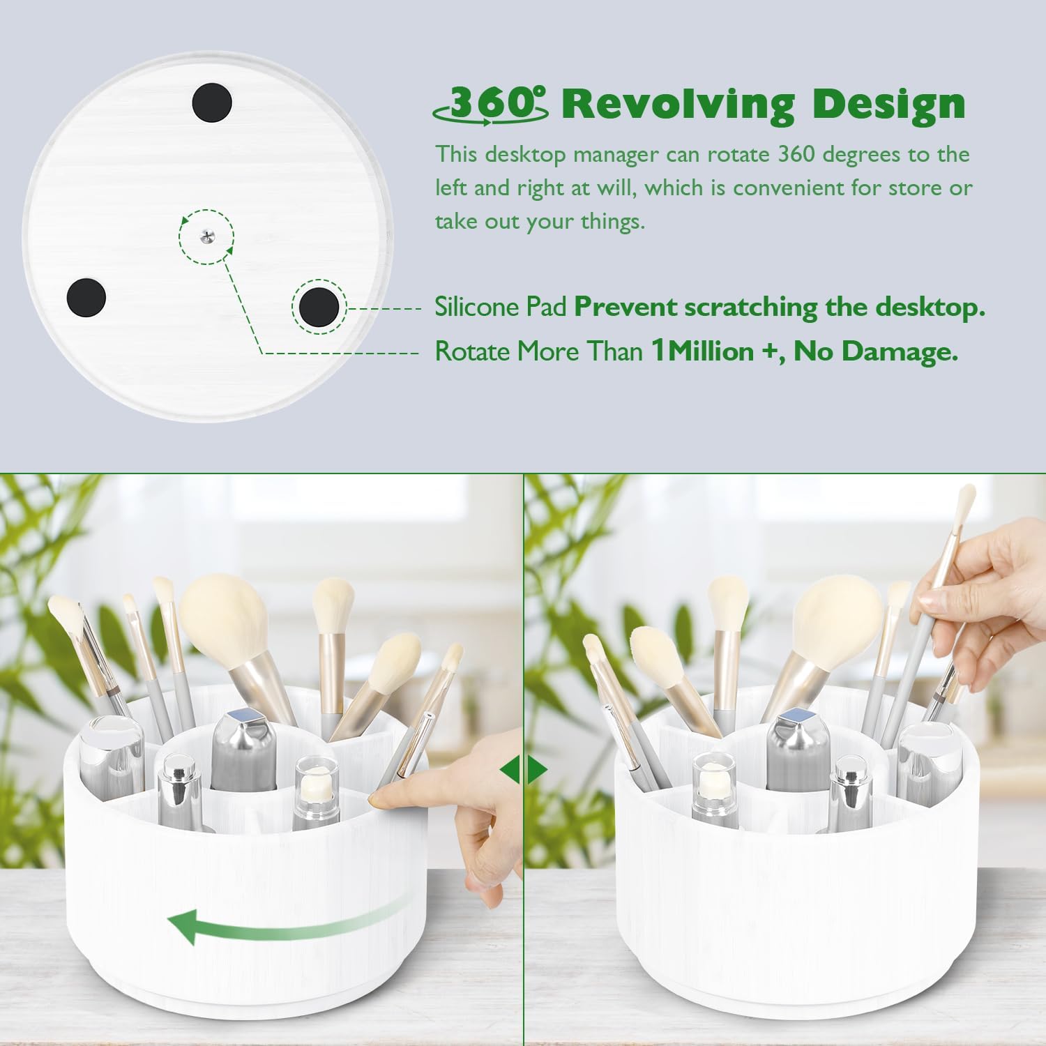 - 【MULTIFUNCTIONAL PURPOSE】Back to School Essentials. The spinning organizer is designed to keep your stuff well organized, 7 sections, 1 big round section in middle will be perfect for your pens, crayons, scissors, paint brushes, scissors, staplers stationery, cutlery and more. The elegant design of our desktop storage organizer makes it perfect to use for classroom, living room, office supplies,cosmetics and kitchen.