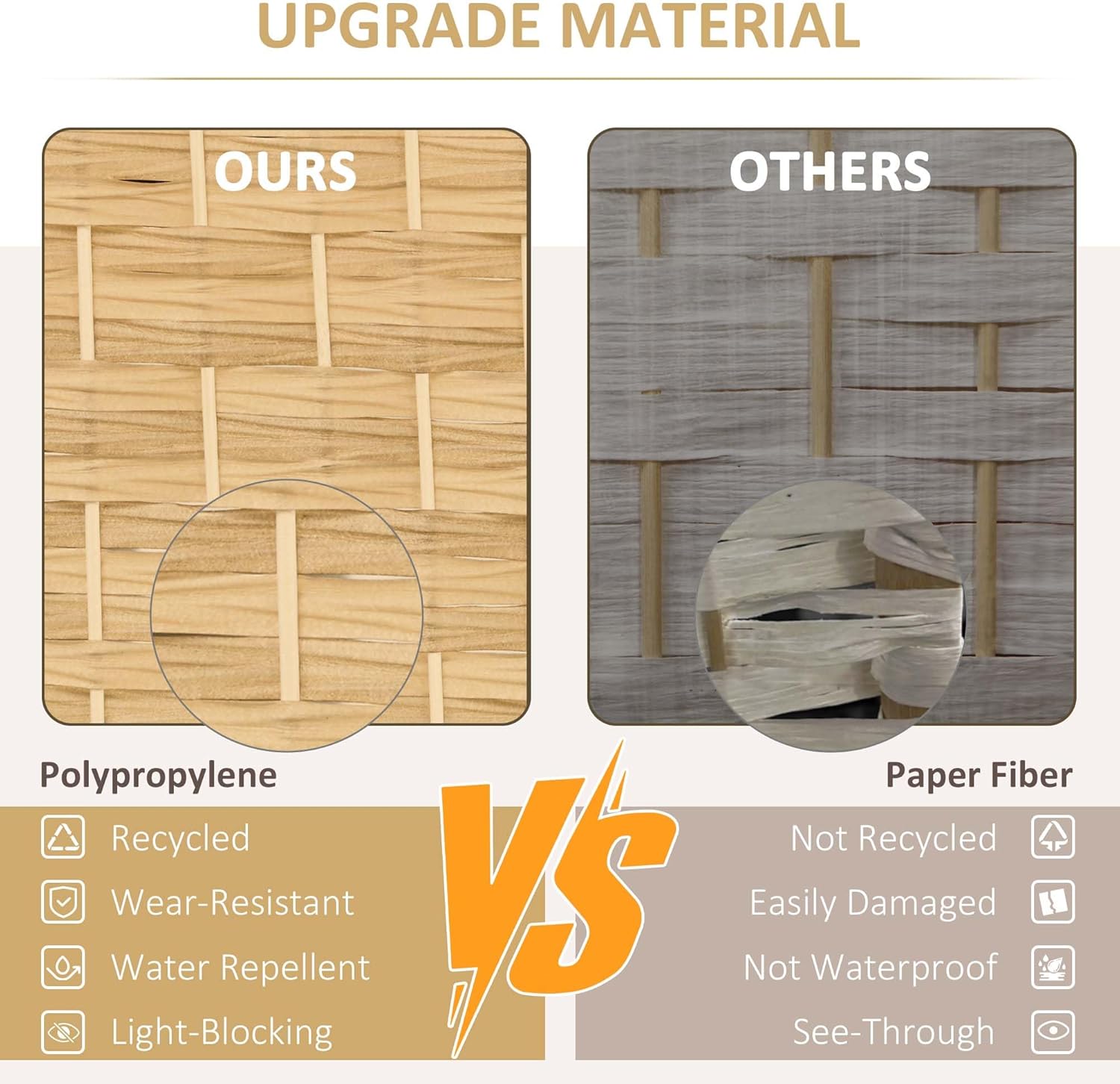 - Quality Material: Our room divider wall is constructed of a Paulownia wood frame and polypropylene panels for superior privacy and durability. It outperforms traditional paper fiber panels that have the issue of separation leading to excessive gaps.