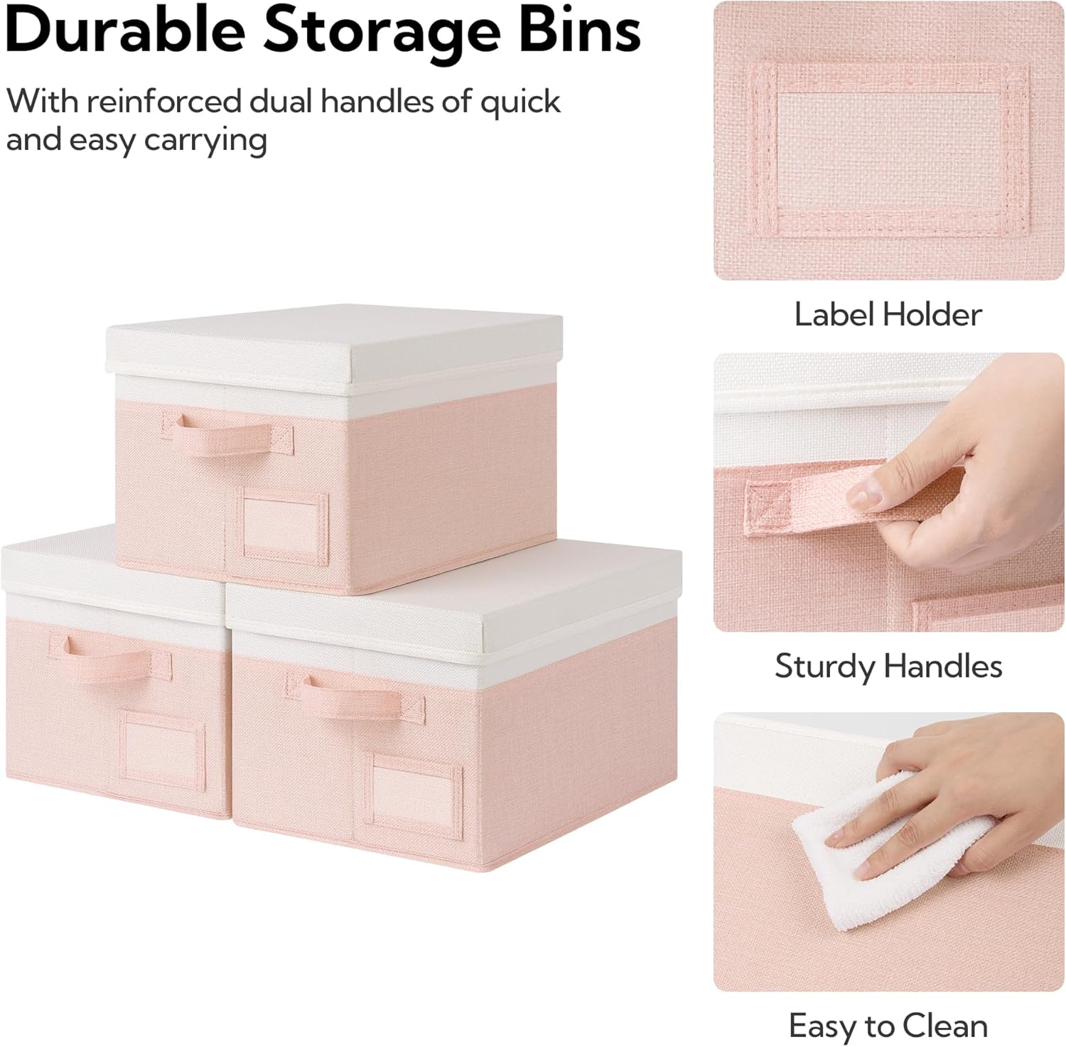 GRANNY SAYS Storage Bins with Lids, Storage Boxes for Organizing, Storage Baskets with Handles, Closet Organizers and Storage, Storage Bins for Shelves, Decorative Storage Boxes, 3-Pack, Pink&Ivory
