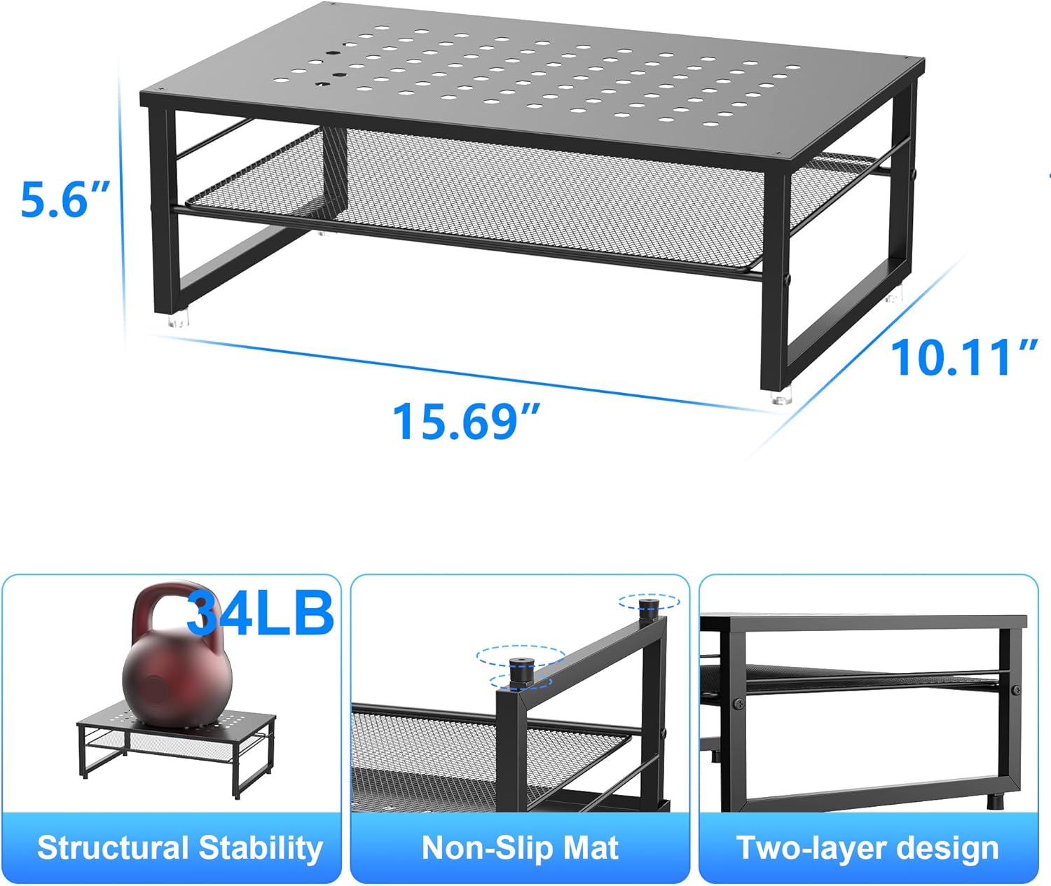 - 【Sturdy and Stable】 The monitor riser is constructed with a 15.7*10.2 inch metal plate and thick steel legs, with a maximum weight capacity of 44 lbs, enabling it to stably support a variety of items.