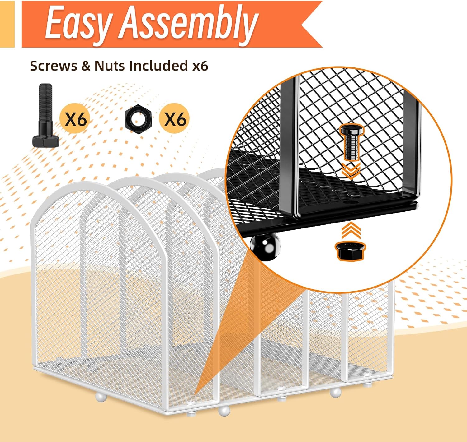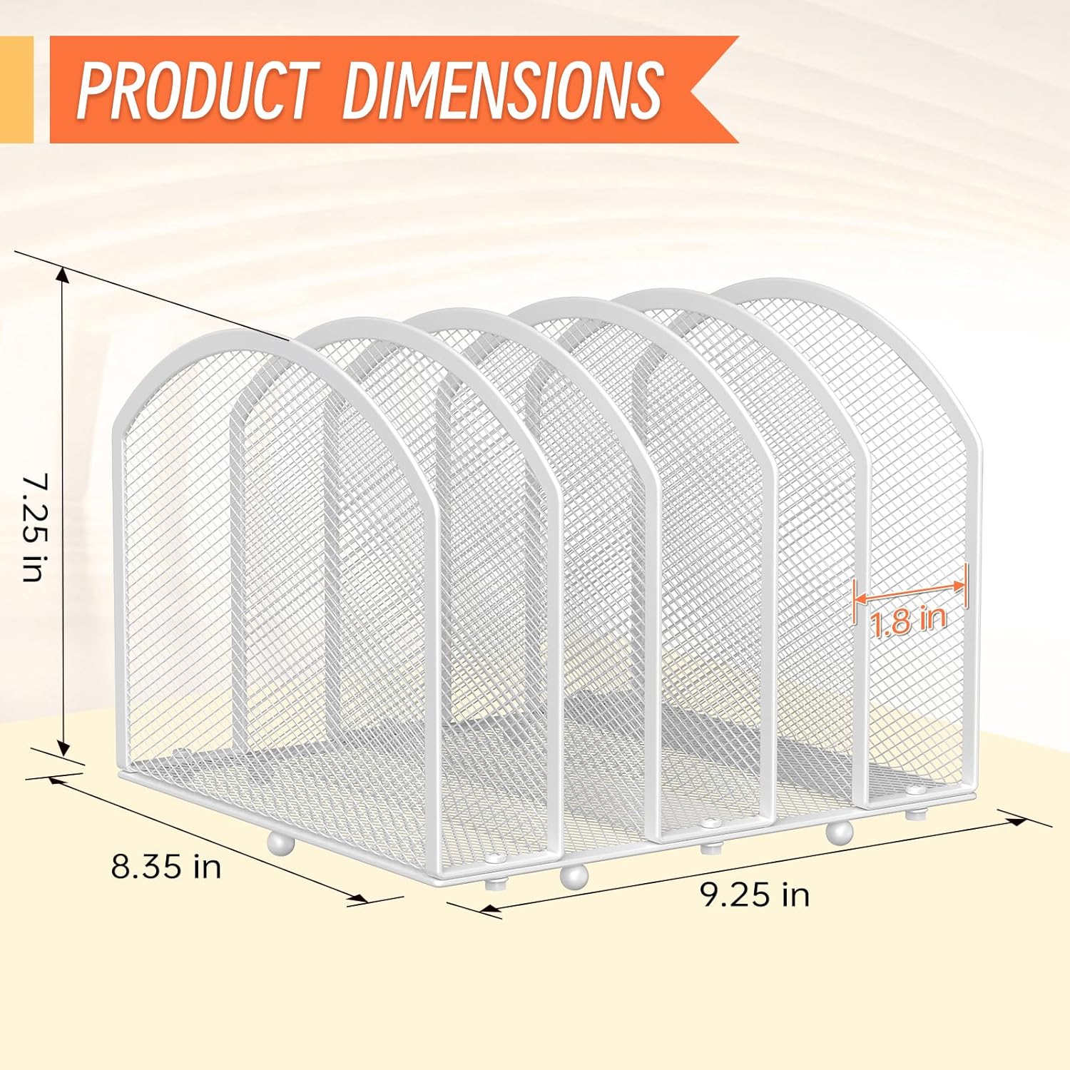 Desk File Organizer 5 Sections Desktop Organizer File Sorter Office Organization File Folder Holder for Office School & Classroom (White, 5 Section - 1Pack)