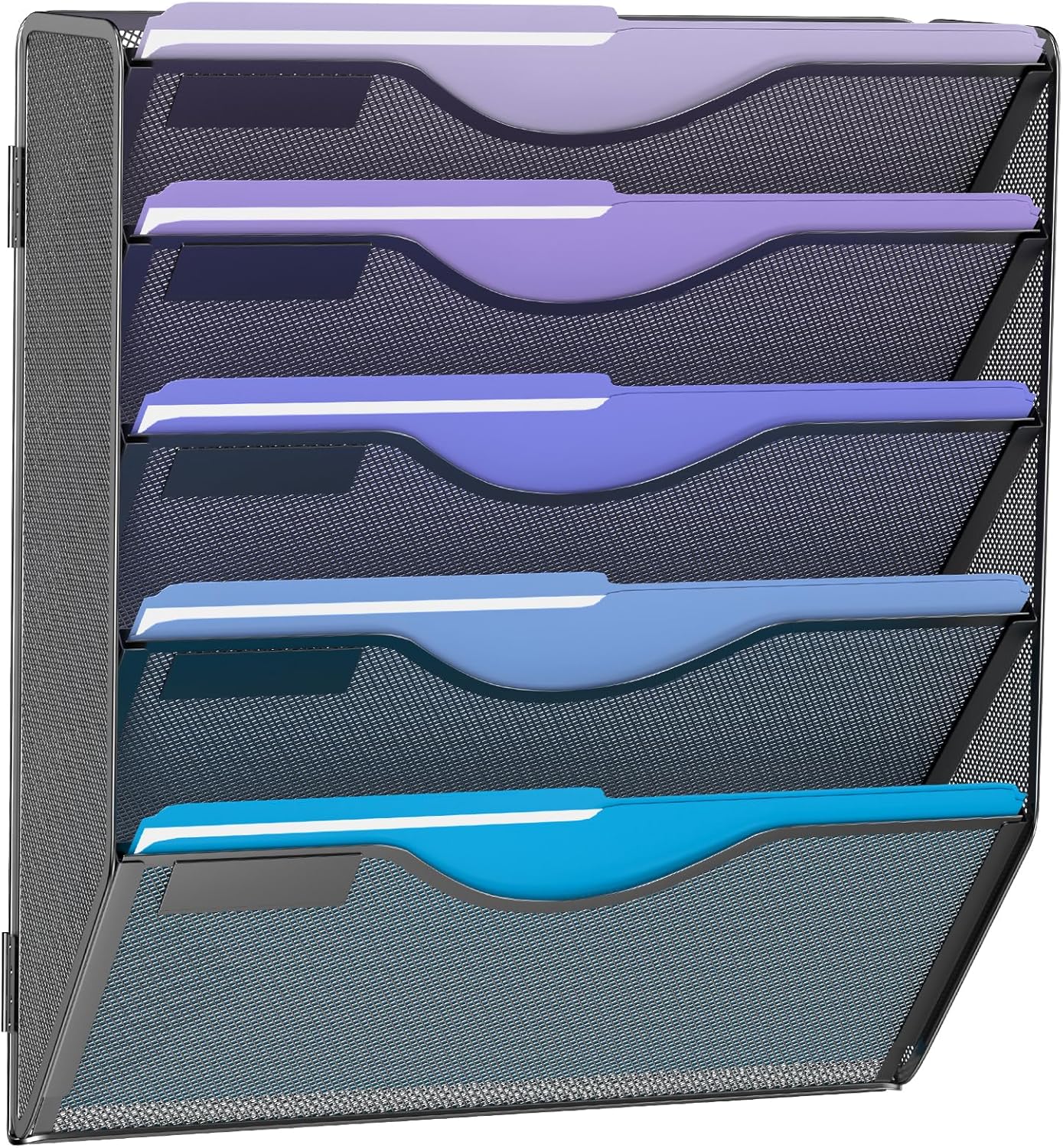 5 Tier Hanging Wall File Organizer, Mesh Mail Paper Orgnization Hanging File Folder Holder for Home Office, Black