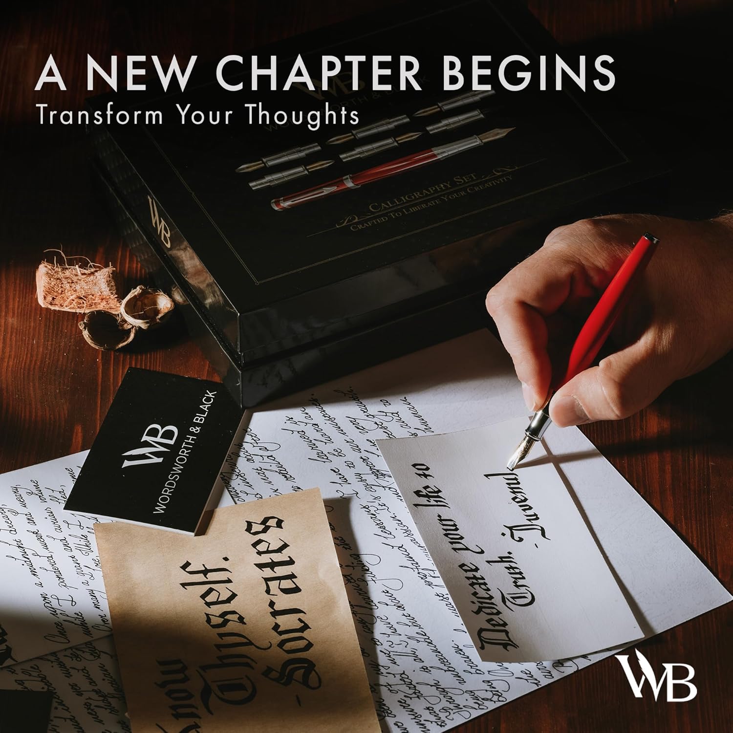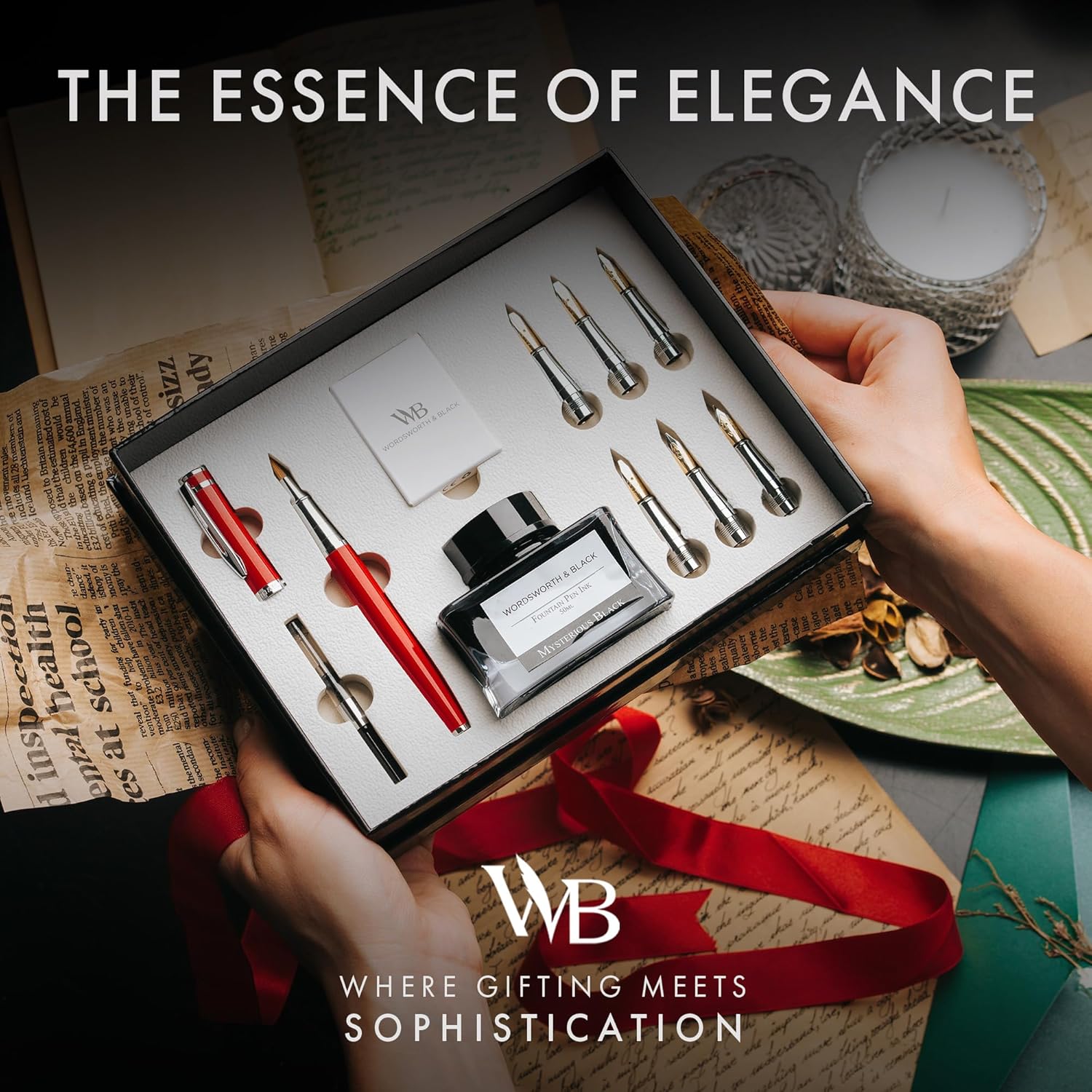 Wordsworth & Black Calligraphy Pen Gift Set, Includes Bottle, 6 Cartridges, Refill Converter, 6 Replacement Nibs, Premium Package, Journaling, Smooth Writing Pens [Red Chrome]
