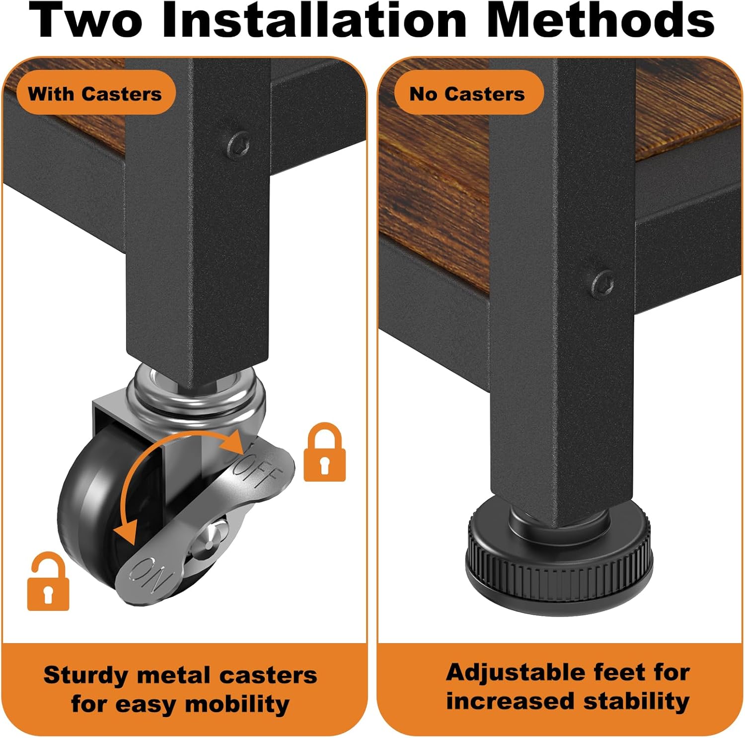 - Two Installation Options: The printer table can be used with or without wheels.Not only does it make it easy to move the printer around without having to manually lift it, but it also makes it easy to clean underneath the printer stand.