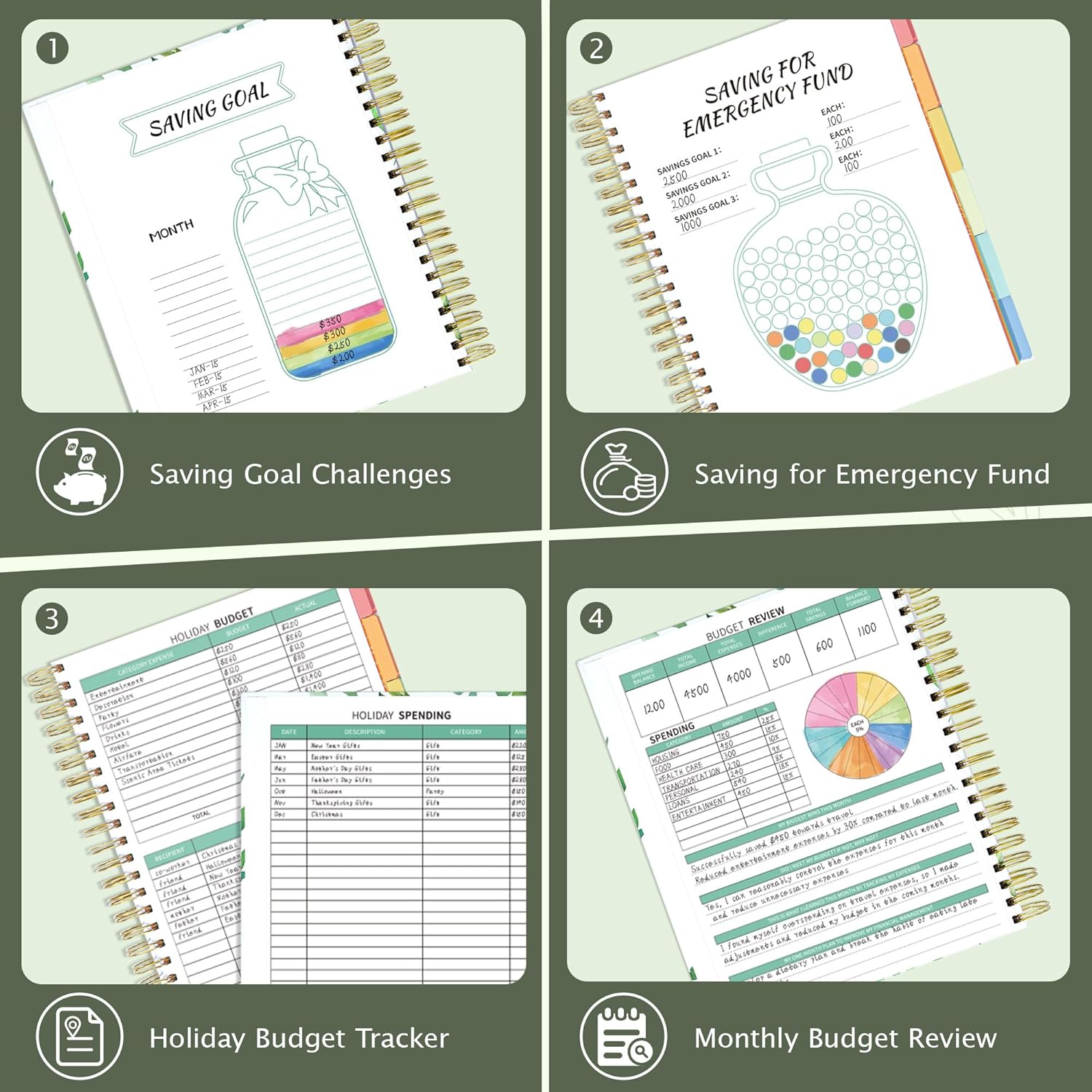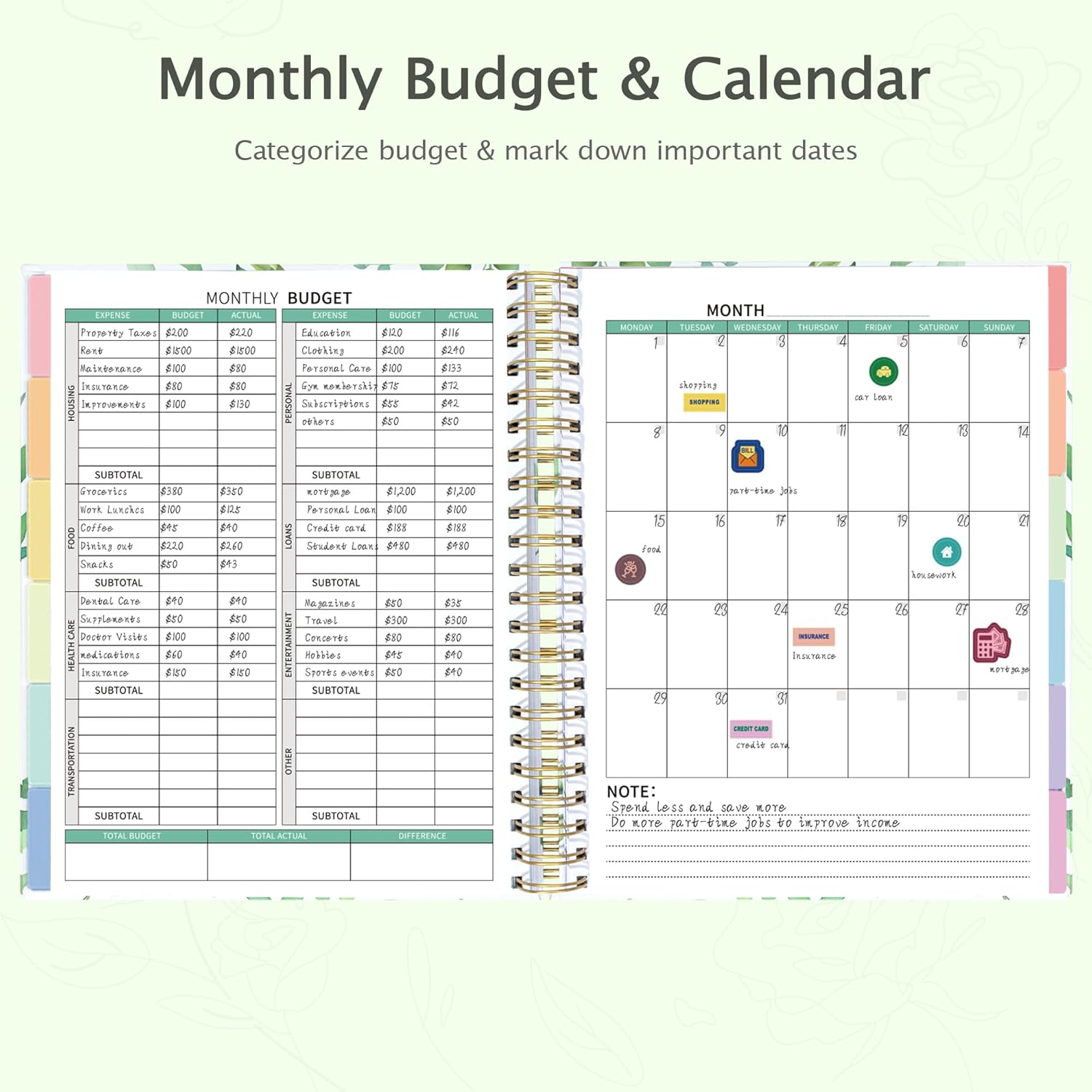 - 12-Month Capacity & Strong Binding - Our budget planner features a dual spiral binding with cardboard hardcover, including 12-month undated design that allows you to start budgeting any time without wasting!