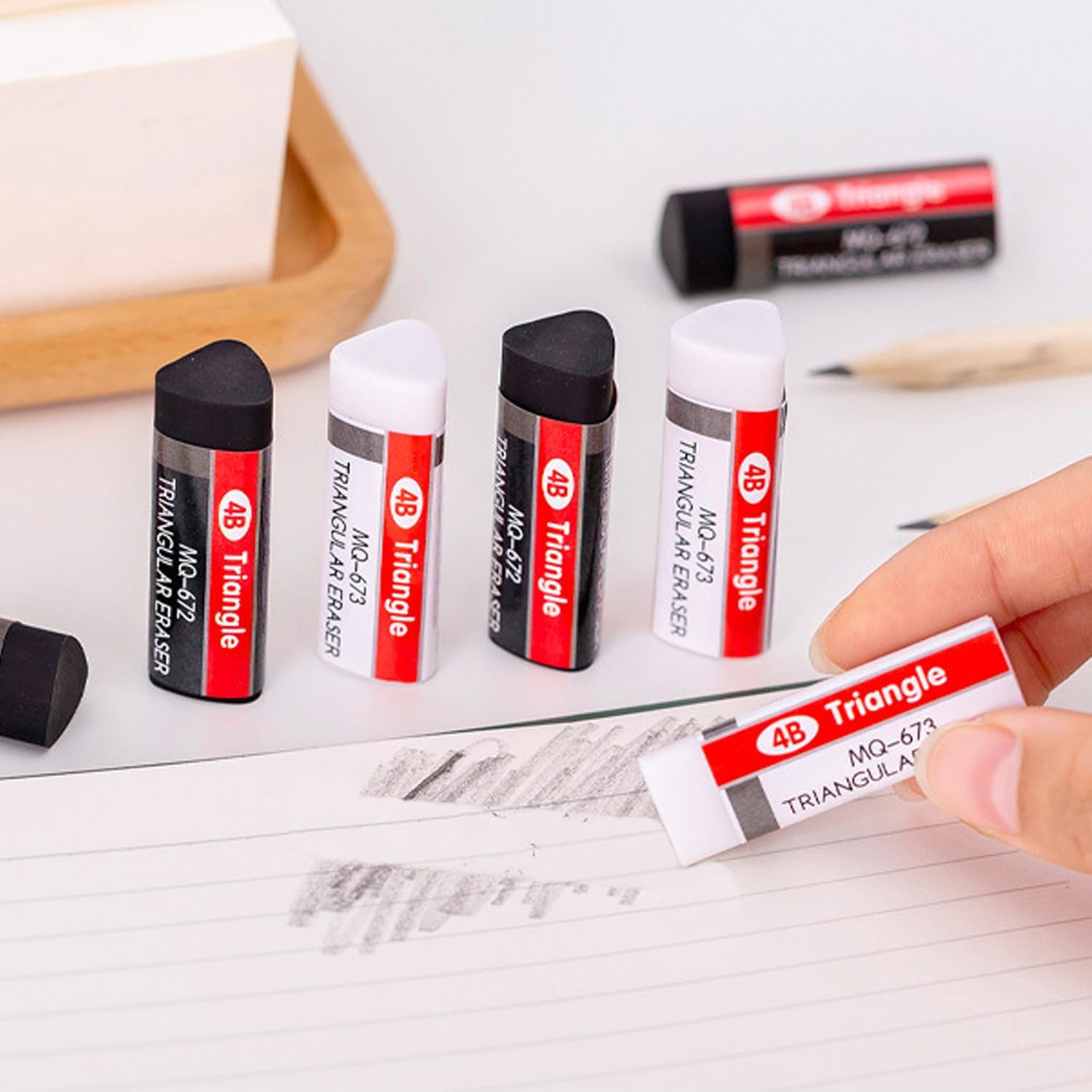 - 【WHITE/BLACK ERASERS】The erasers are triangle shape. The white/black erasers are not only suitable for students or children to study in school, but also suitable for adults to work in the office.