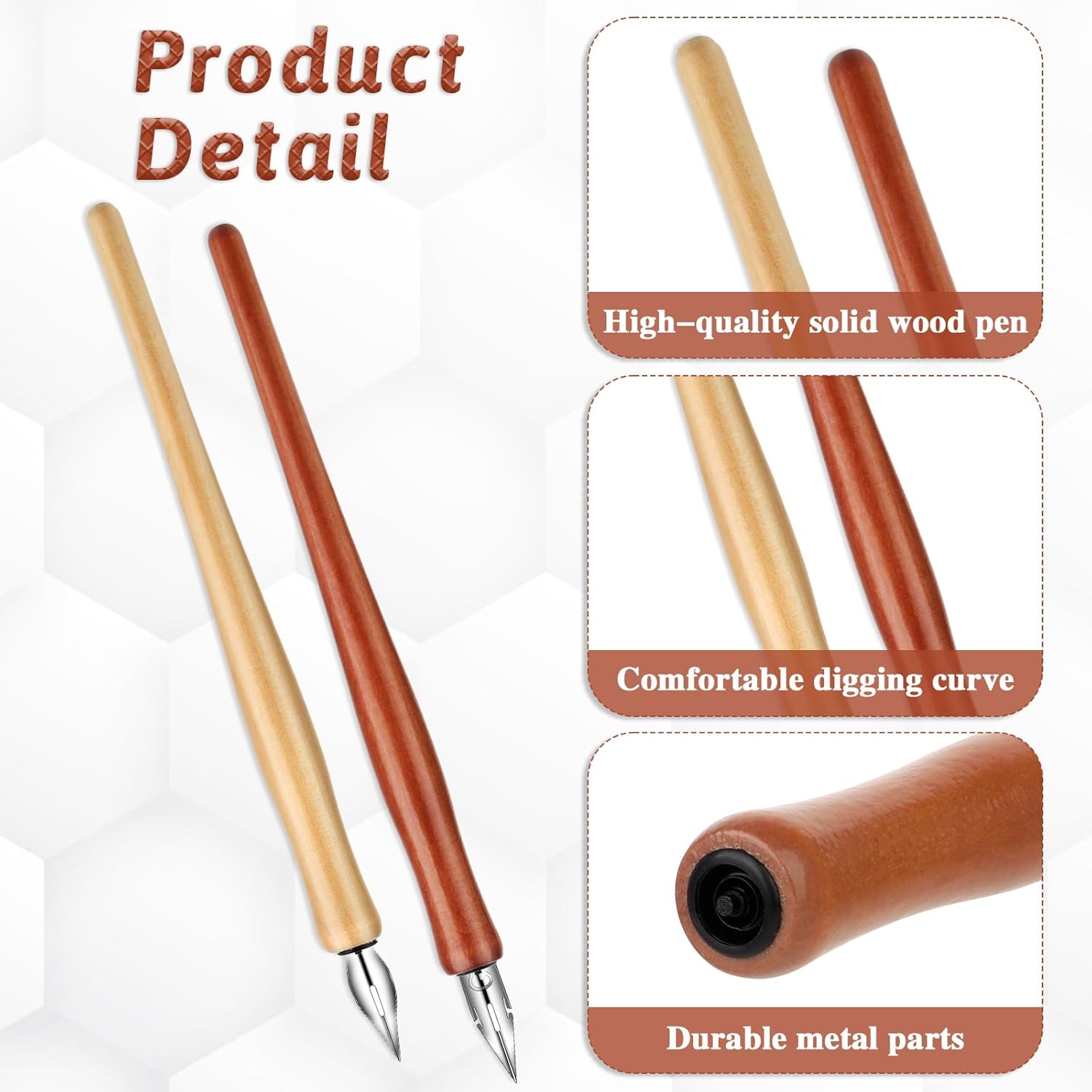 - Reliable materials: the oblique calligraphy pen holder is made of wood for a comfortable grip; the pen tip is made of thin stainless steel, which can be used for a long time, is not easy to rust, and writes smoothly. It also has a small curved indentation on the front of the stand for your index finger to rest on