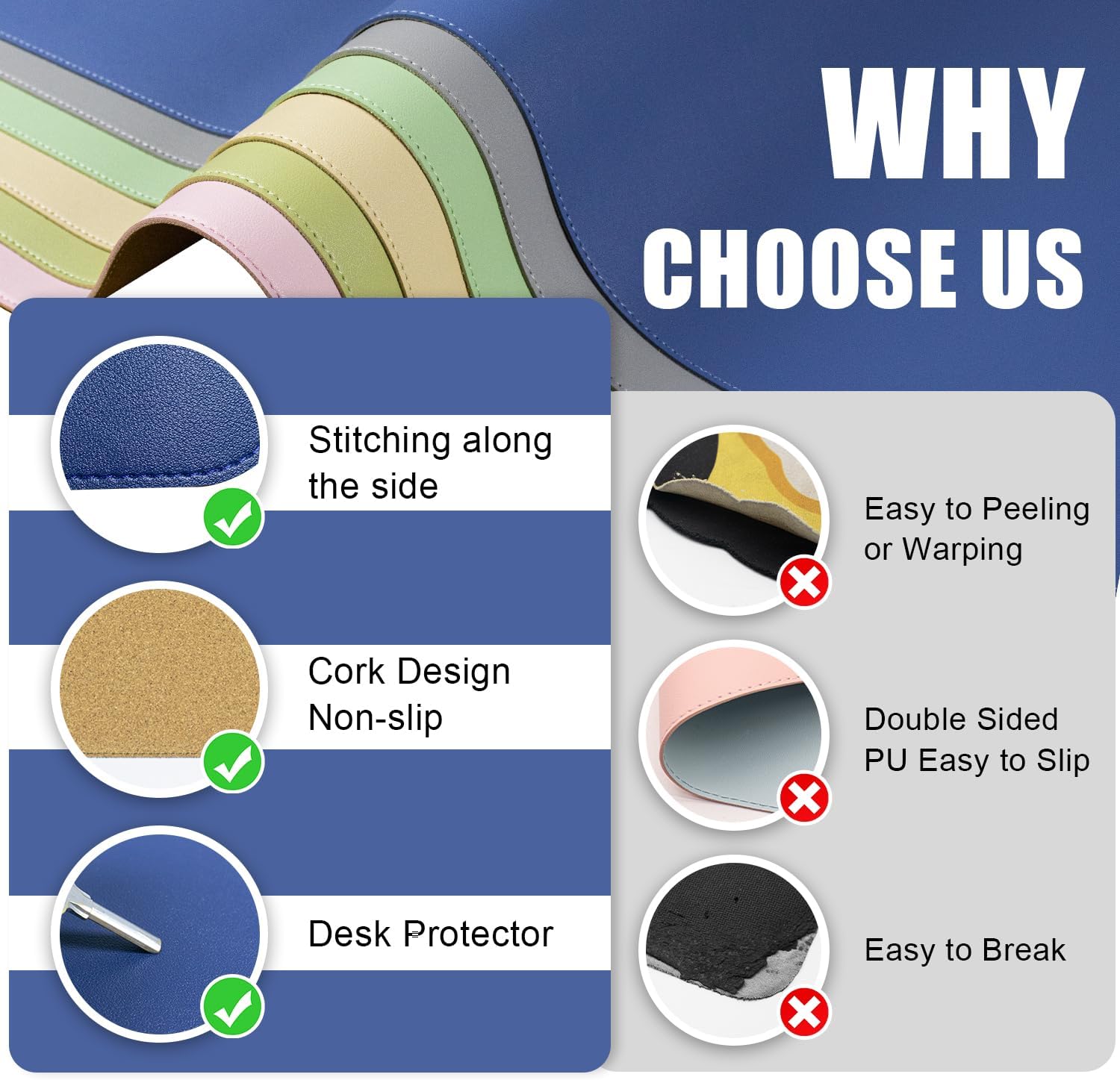 - 🖱️ 🖱️Superior Protection Mat for Desk: Durable PU leather and cork material, provide reliable protection for your desk surface. Safeguard your tabletop from everyday wear and tear with our Dual-Sided Desk Pad. This large mouse pad and desk mat combo is a protective barrier, preventing scratches, scuffs, and spills from damaging your workspace.
