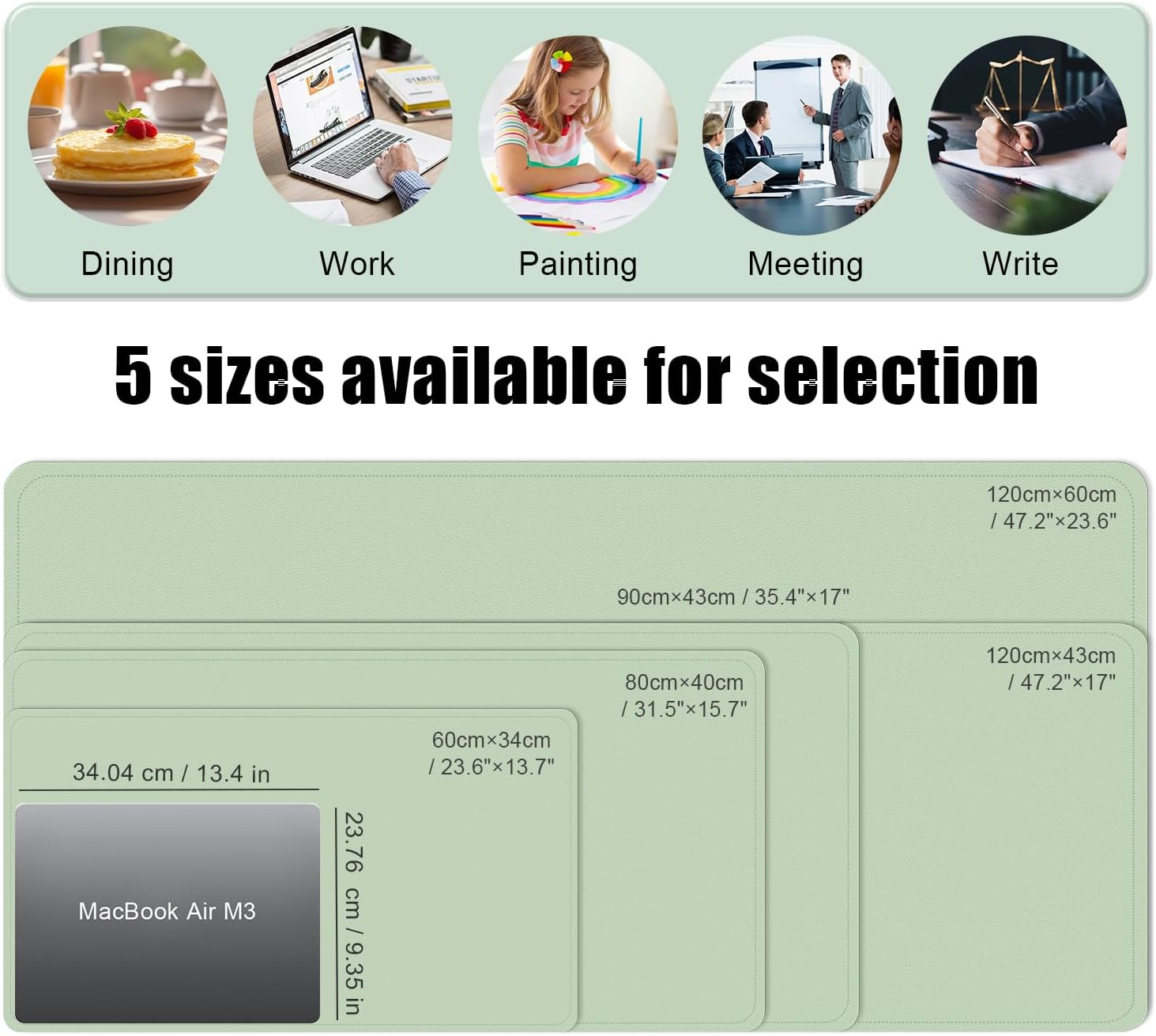 Non Slip Desk Mat, 31.5" x 15.7" PU Leather Desk Pad, Cork Desk Mat for Desktop, Desk Pad for Keyboard and Mouse, Ideal for Office and Home, Light Green