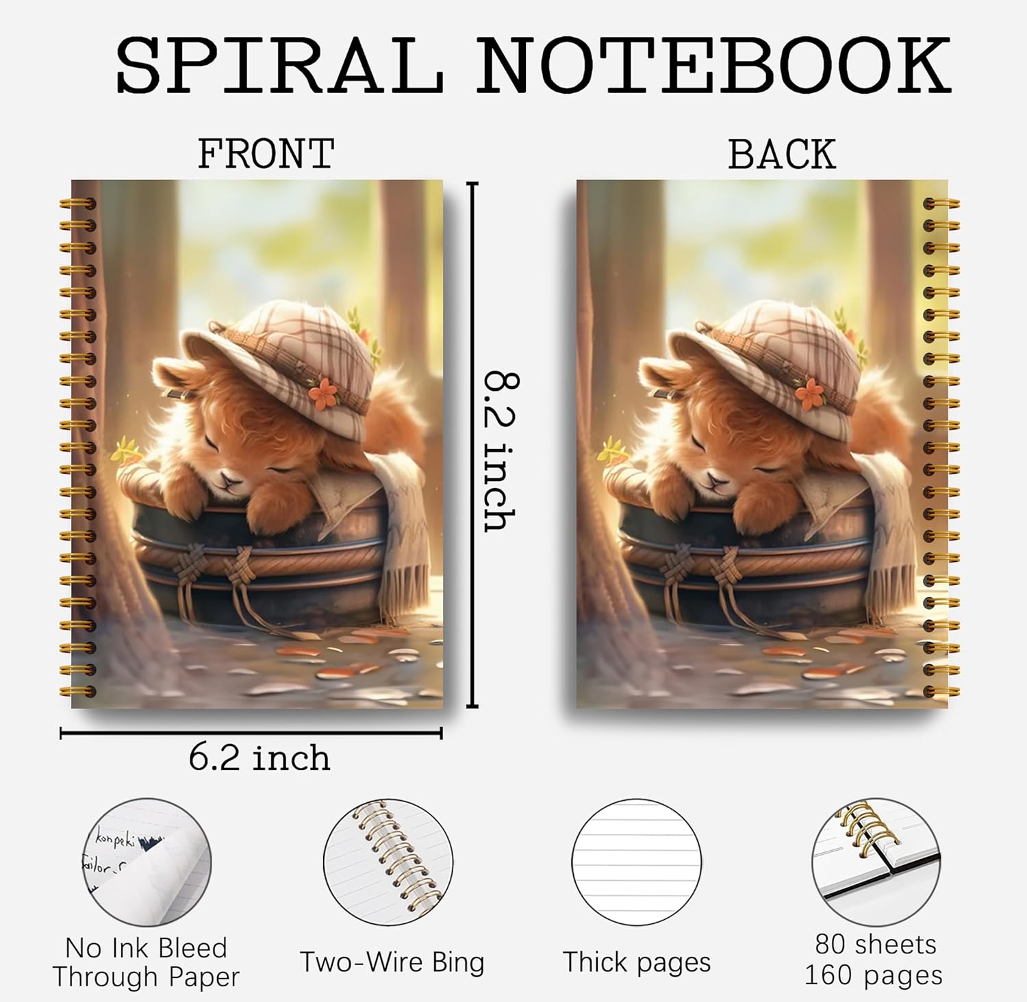 Cute Highland Cow Notebook - Western Cow Notebook, Highland Cow Office Supplies, Highland Cow Gifts, Cow Lover Gifts, Cute Cow Stuff, Funny Sleeping Highland Cow Spiral Notebook 5.5x8.3