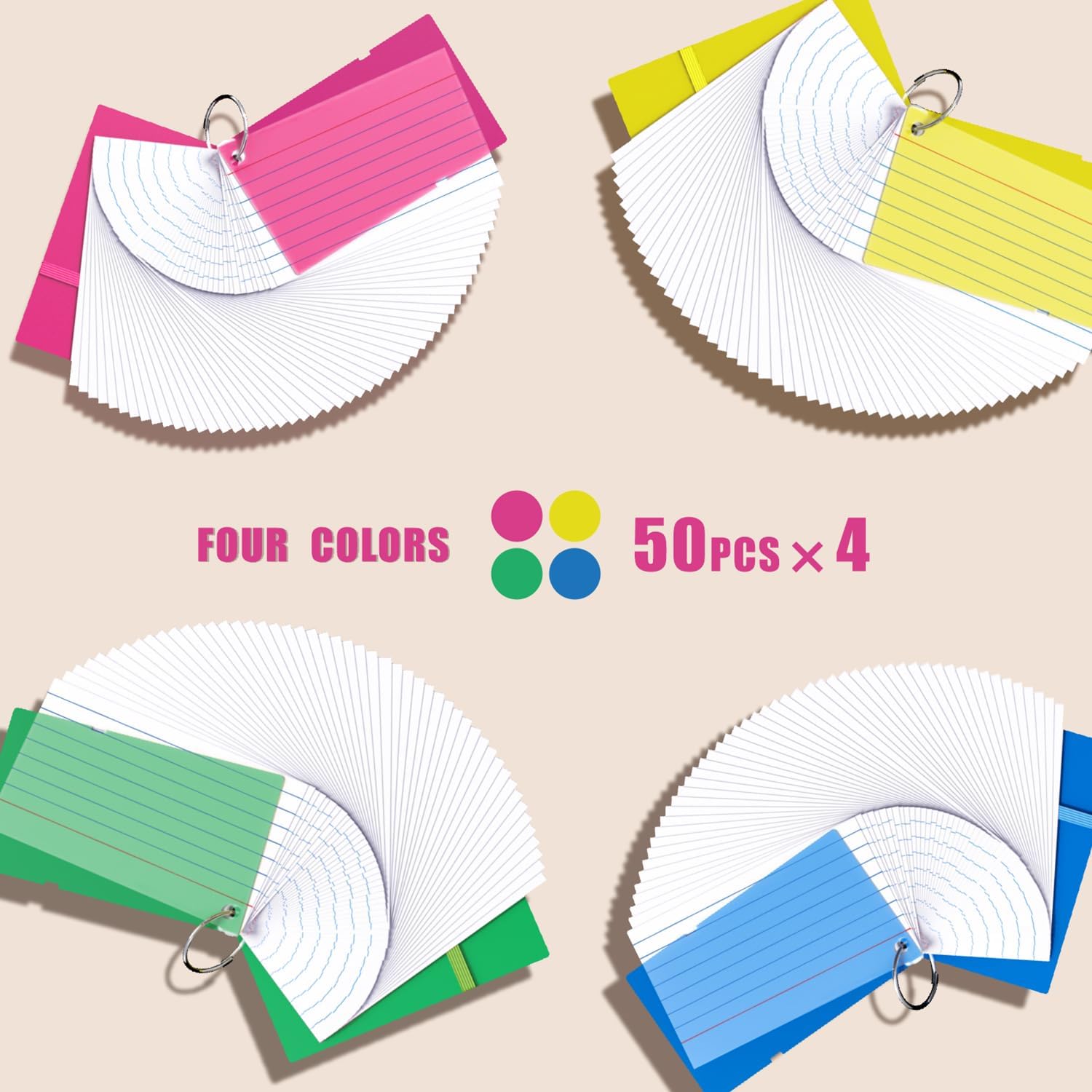 - 【Package includes】 You will get 200Pcs Colored Index Cards with 4 Rings, including 4 different colors, 50 pieces of each color.