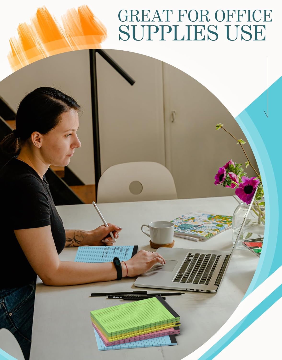 - 【MICRO PERFORATED】- Notepads 5x8 sheet is designed with perforations at the top. Sheets measure 5x7 when torn out. These rows of small holes let you separate a notebook paper sheet from the rest of the pad without damaging the binding. Small legal pads 5x8 colored allowing you to remove pages effortlessly without damaging the sheet.