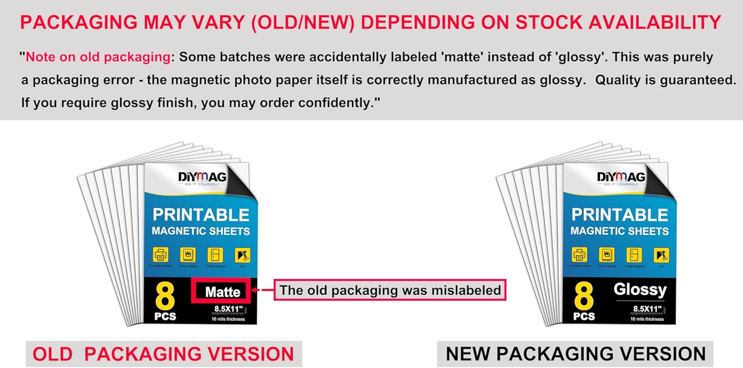 - 【NOTE ON OLD PACKAGING】Some batches of products were accidentally marked as "matte" instead of "smooth" on the outer packaging. This was purelya packaging error - the magnetic printable paper itself is correctly manufactured as glossy. Quality is guaranteedIf you reguire glossy finish, you can order confidentlv
