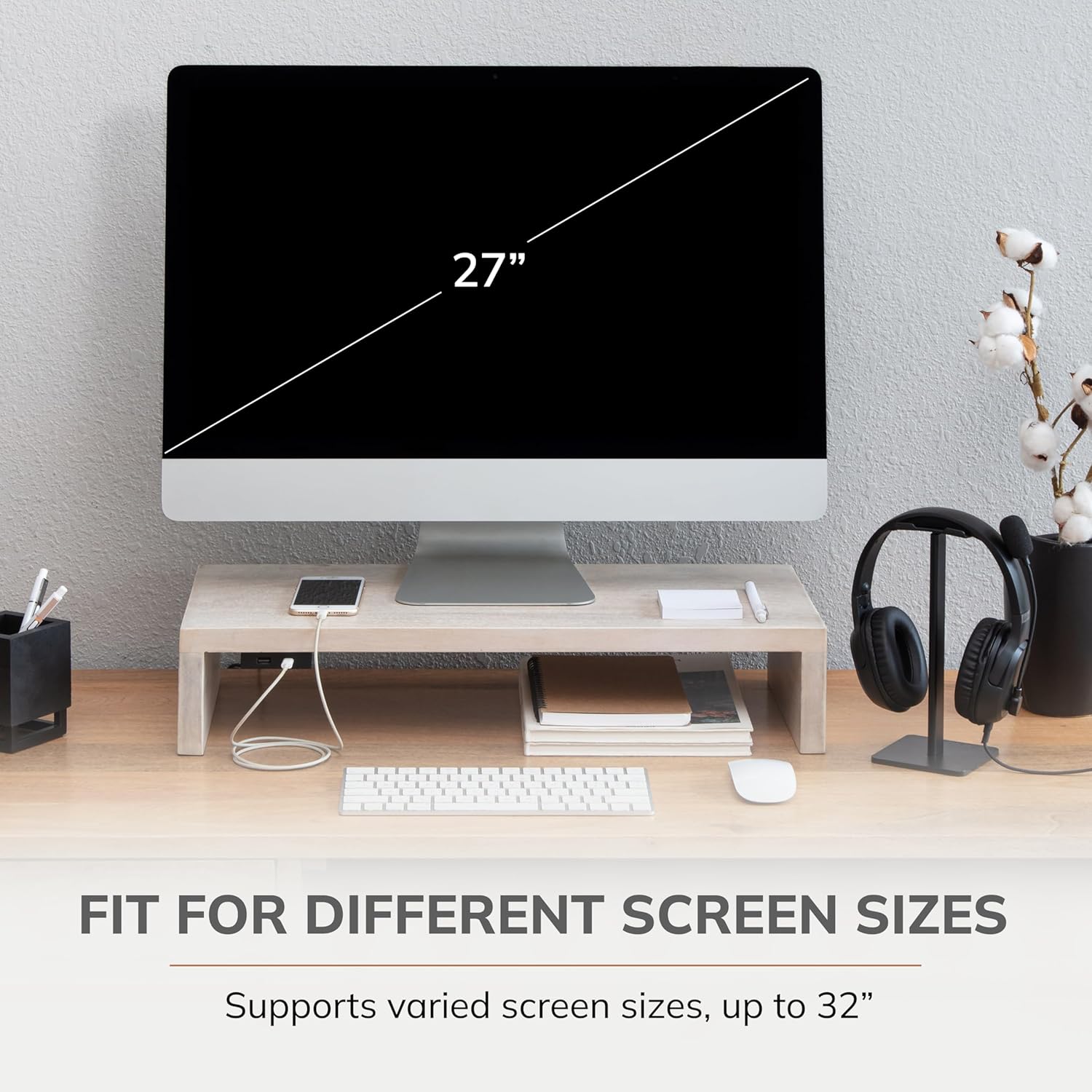 Anji Mountain Wooden Monitor Stand - Elegant Monitor Riser,Perfect Monitor Stand for Desk Organization, Durable Wood Construction monitor stands,Enhances Ergonomics and Workspace Efficiency,White Wash