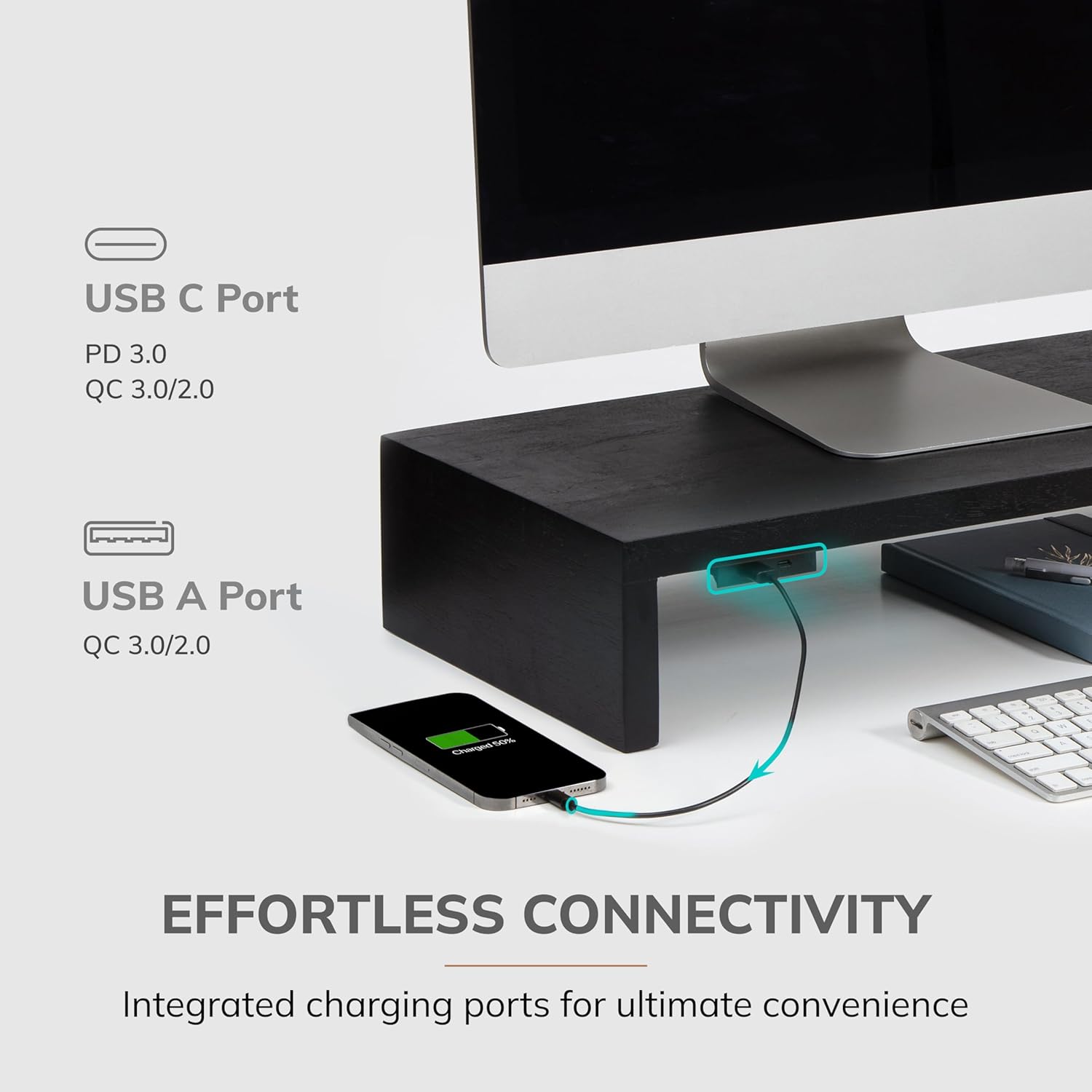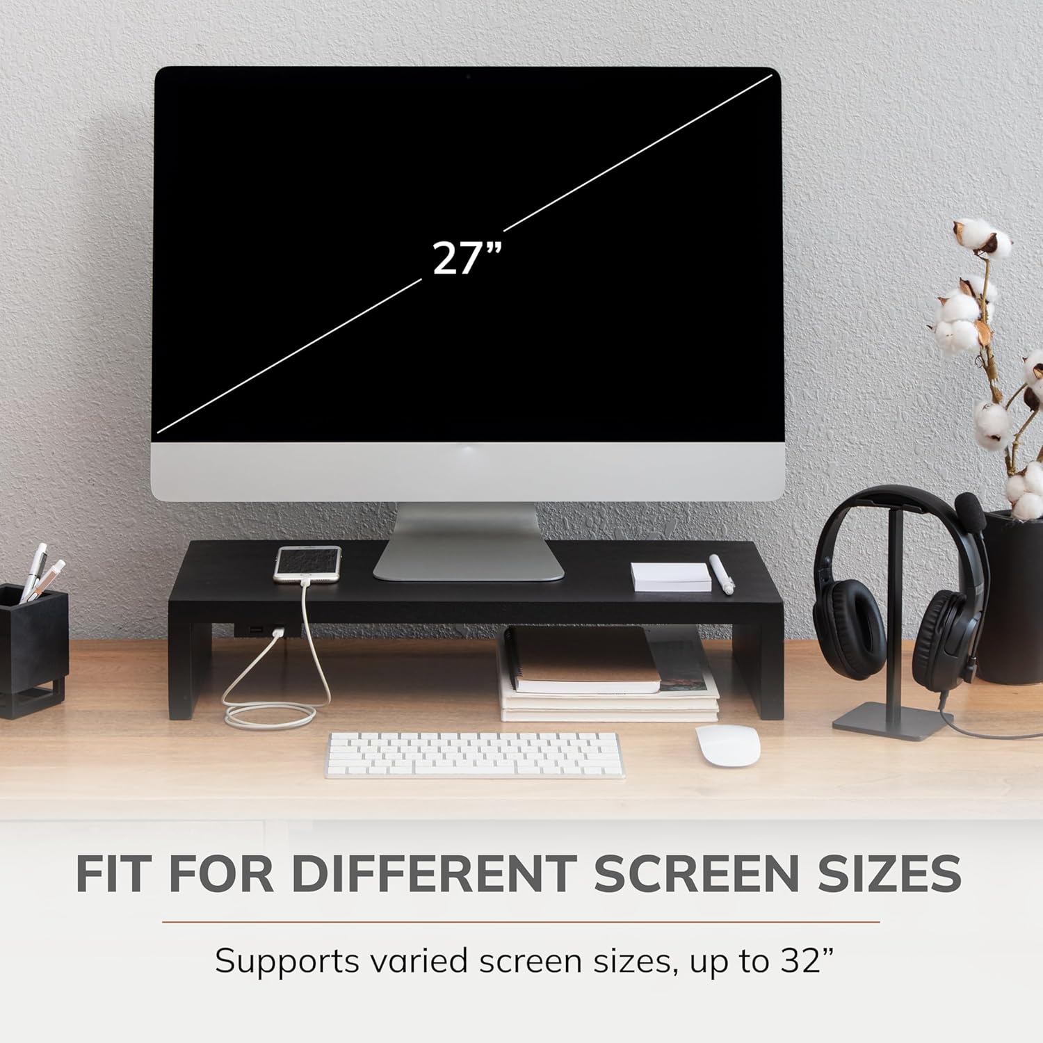 Anji Mountain Wooden Monitor Stand - Elegant Monitor Riser, Perfect Monitor Stand for Desk Organization, Durable Wood Construction monitor stands, Enhances Ergonomics and Workspace Efficiency,Black