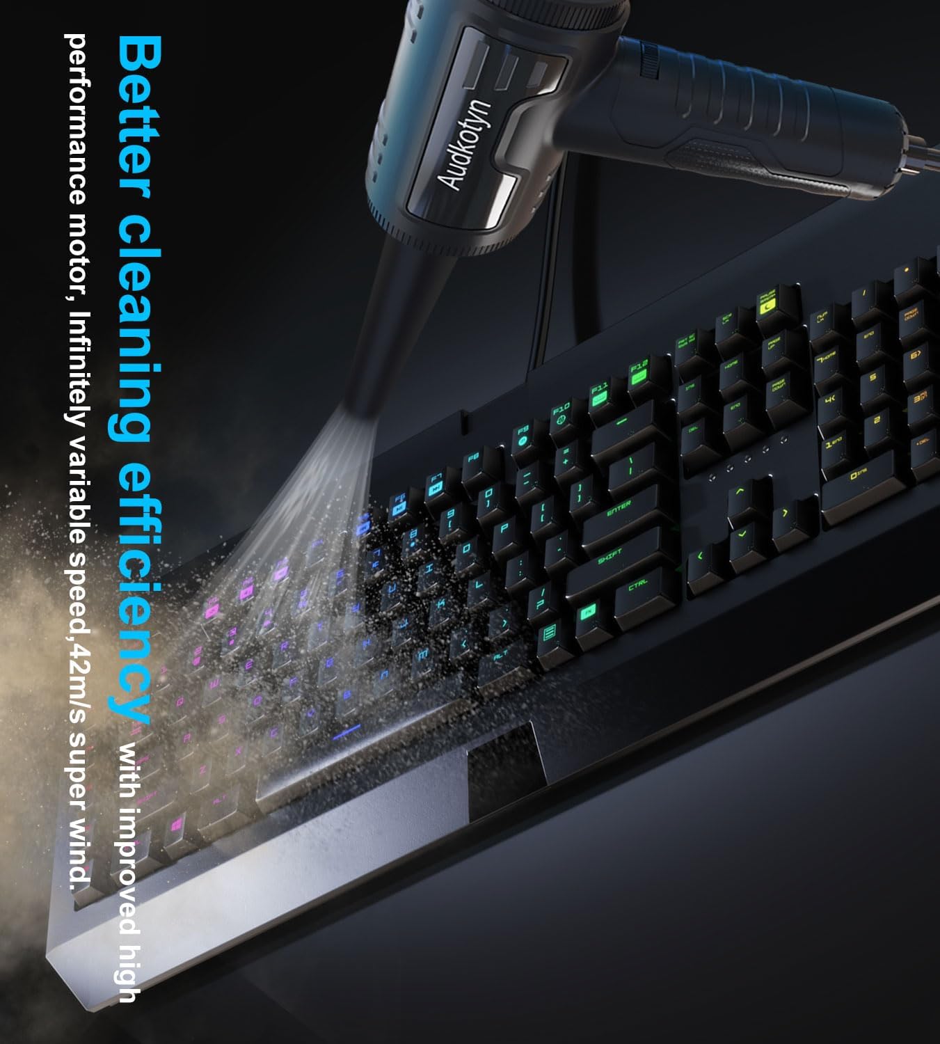 - High Pressure; Compressed Air blows immediate and continuous high-pressure air to clean dust debris and dirt away from any Electronic device in your home or office. (Need to connect the power supply when using)