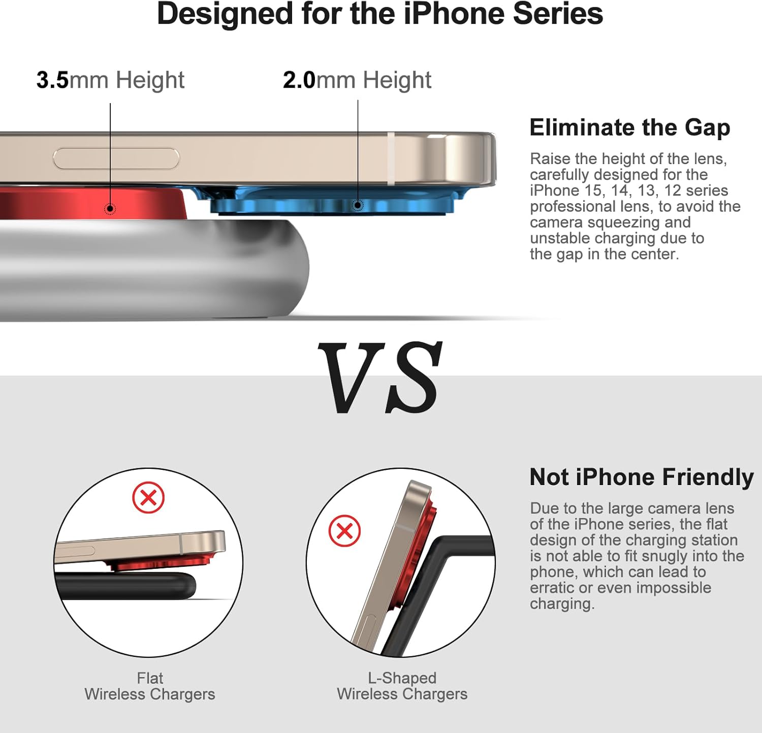 - 3 In 1 FAST WIRELESS CHARGER FOR IPHONE : This magnetic wireless charger stand charges iPhone16,15,14,13,12 Series from 0% to 100% in 2-3 hours. Almost as fast as the original Mag Safe charger (depending on battery condition and ambient temperature). It is highly recommended to charge without a case or use a case with Mag-Safe.