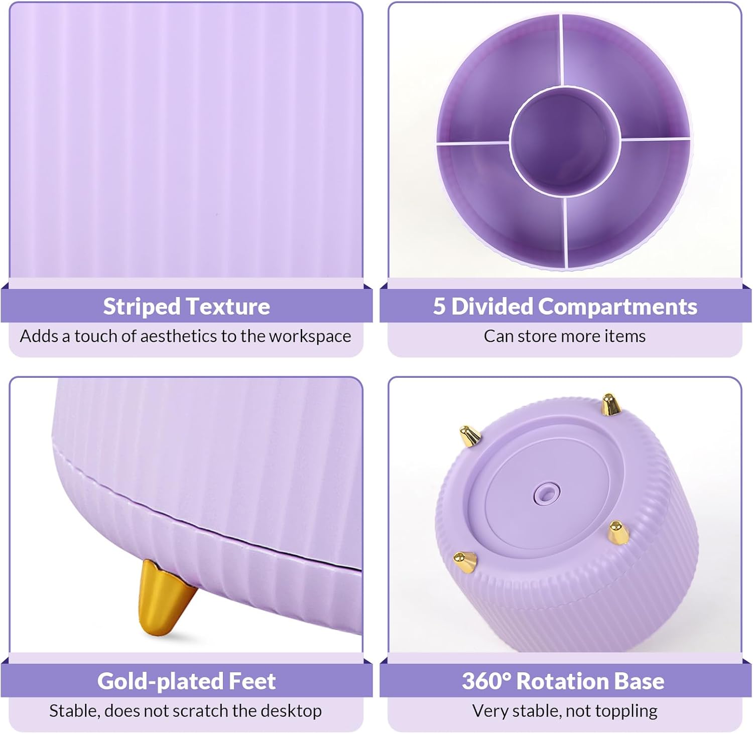 - What You Get: This set includes 2 purple rotating pen holders and 2 non-slip mats. Made from high-quality, sturdy materials, these pencil organizers are built to last, ensuring they will be a reliable addition to your desk for years to come