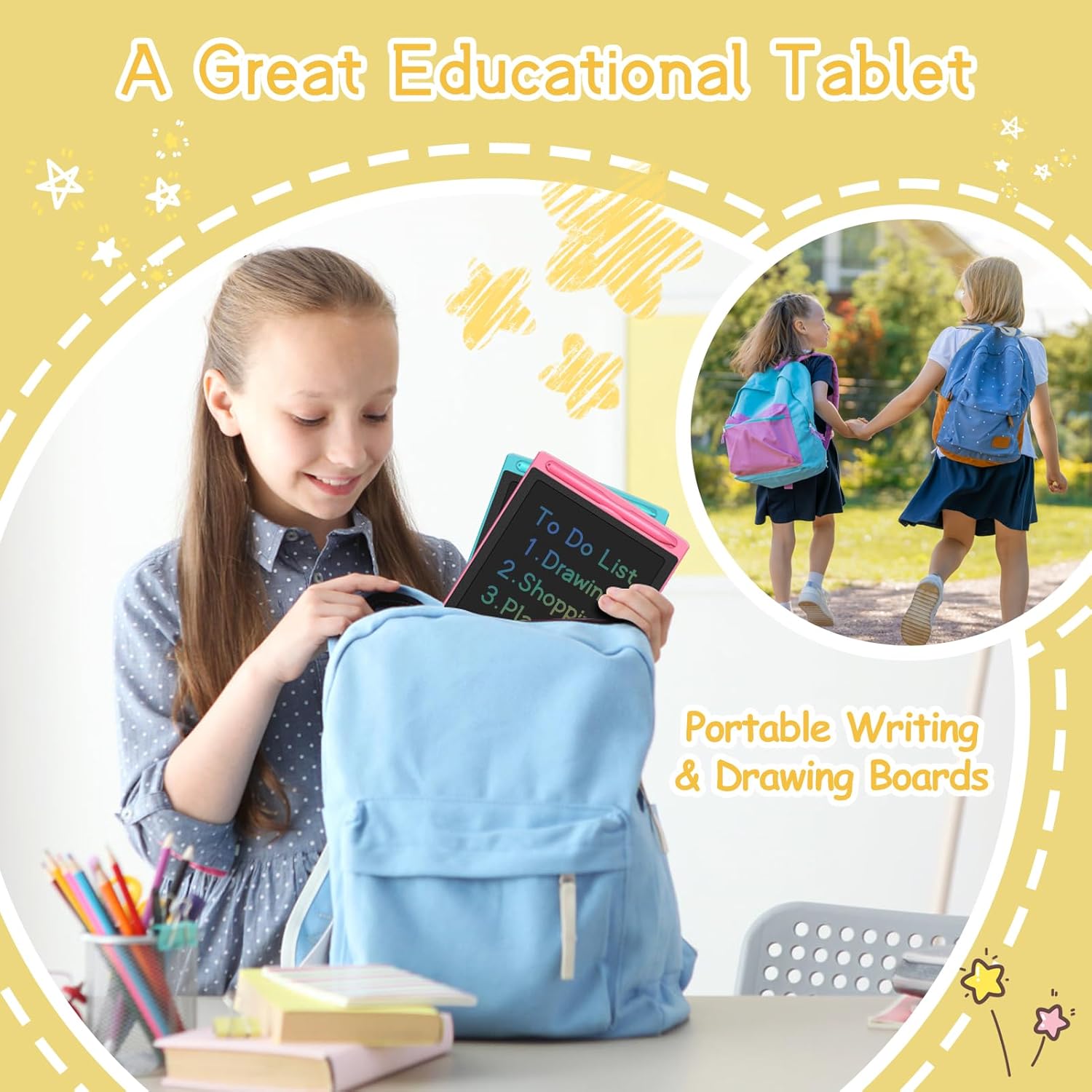 - Portability and Reliability: Doodle board is convenient for kids to use and carry with a small size, 8.5 inches and lighter weight, 89 grams but impact-resistant plastic. Kids writing tablet can be easily put in handbags, travel bags as a great travel essential toys for kids. Kids writing tablets made of durable plastic with waterproof design.