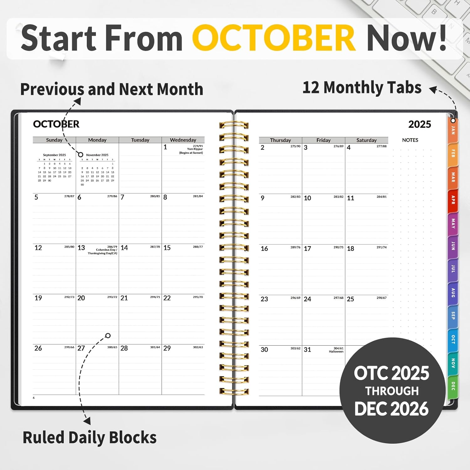 - 2026 Professional Planner - Cover from January 2026 to December 2026, Features 12 months of monthly and weekly pages, and also inclueds 3 extra monthly pages for October to December 2025 and 12-monthly tabs, with Lay-flat capability for all your planning and scheduling needs, and measures 6.4"x8.3".