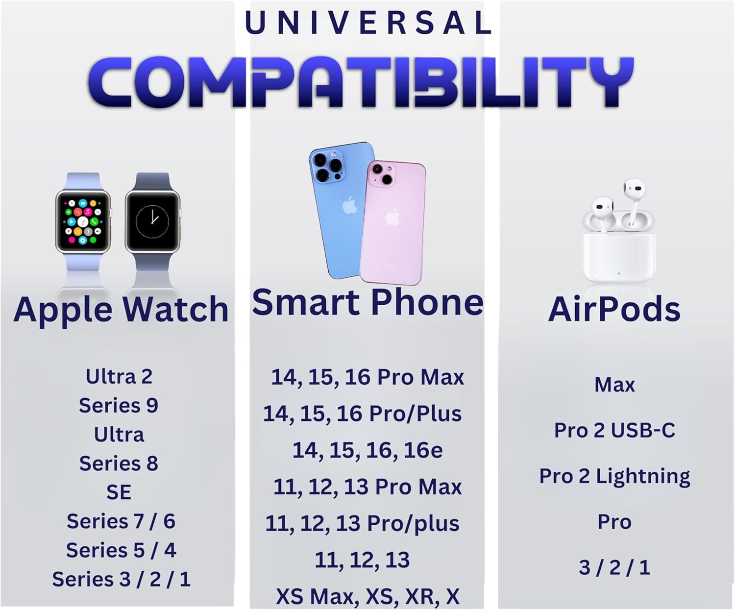 - Designed for seamless compatibility with iPhone 16, 15, 14, 13, 12, and 11 series. Also supports iWatch and AirPods, ensuring effortless charging and uninterrupted audio experiences.Clutter free, Desk and Travel friendly.