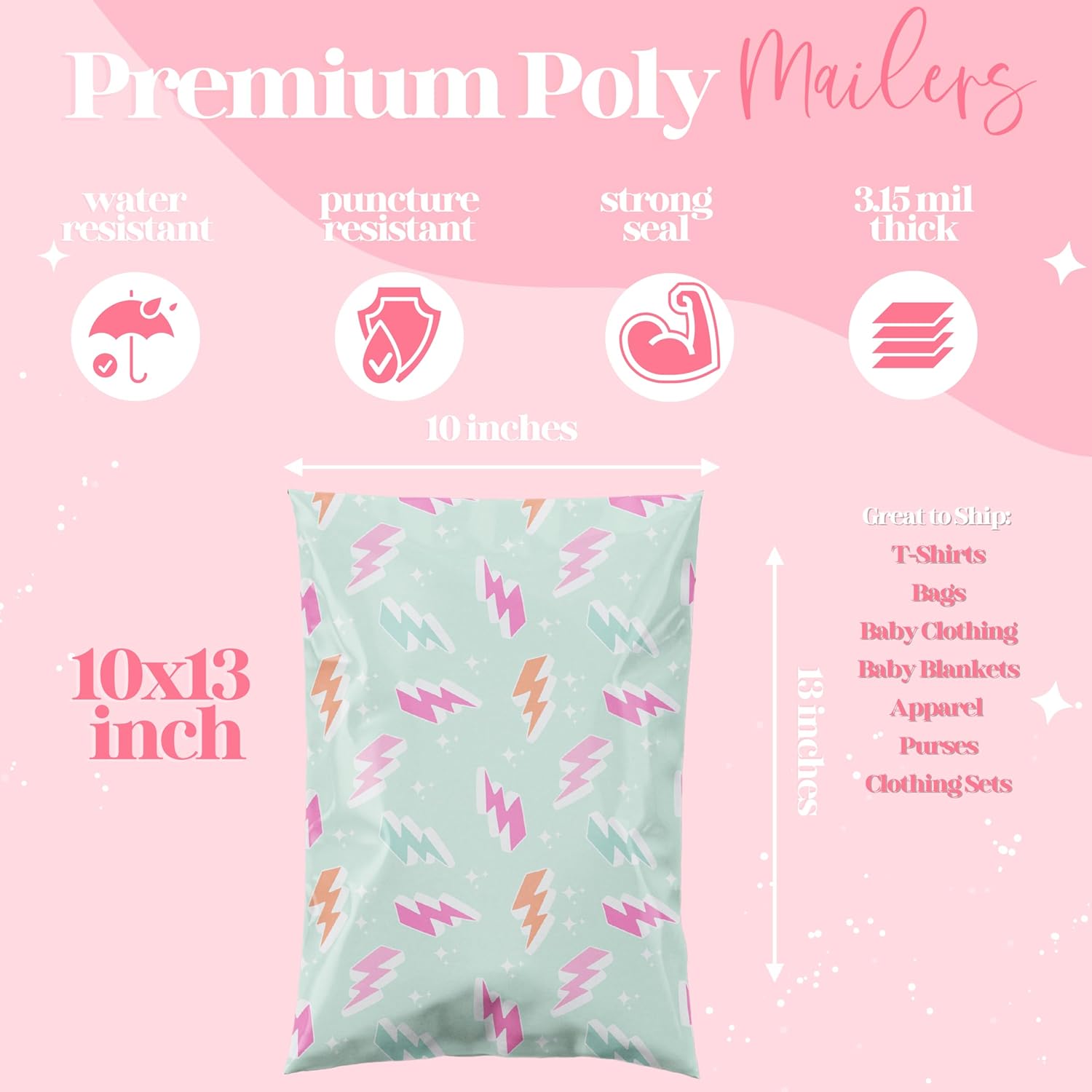 14.5x19 Designer Poly Mailer 100 Pack Heavy Duty Waterproof Self Seal Shipping Bags for Small Business Large Mailing Envelopes Bulk Tear Resistant Cute Packaging Lightning Bolt