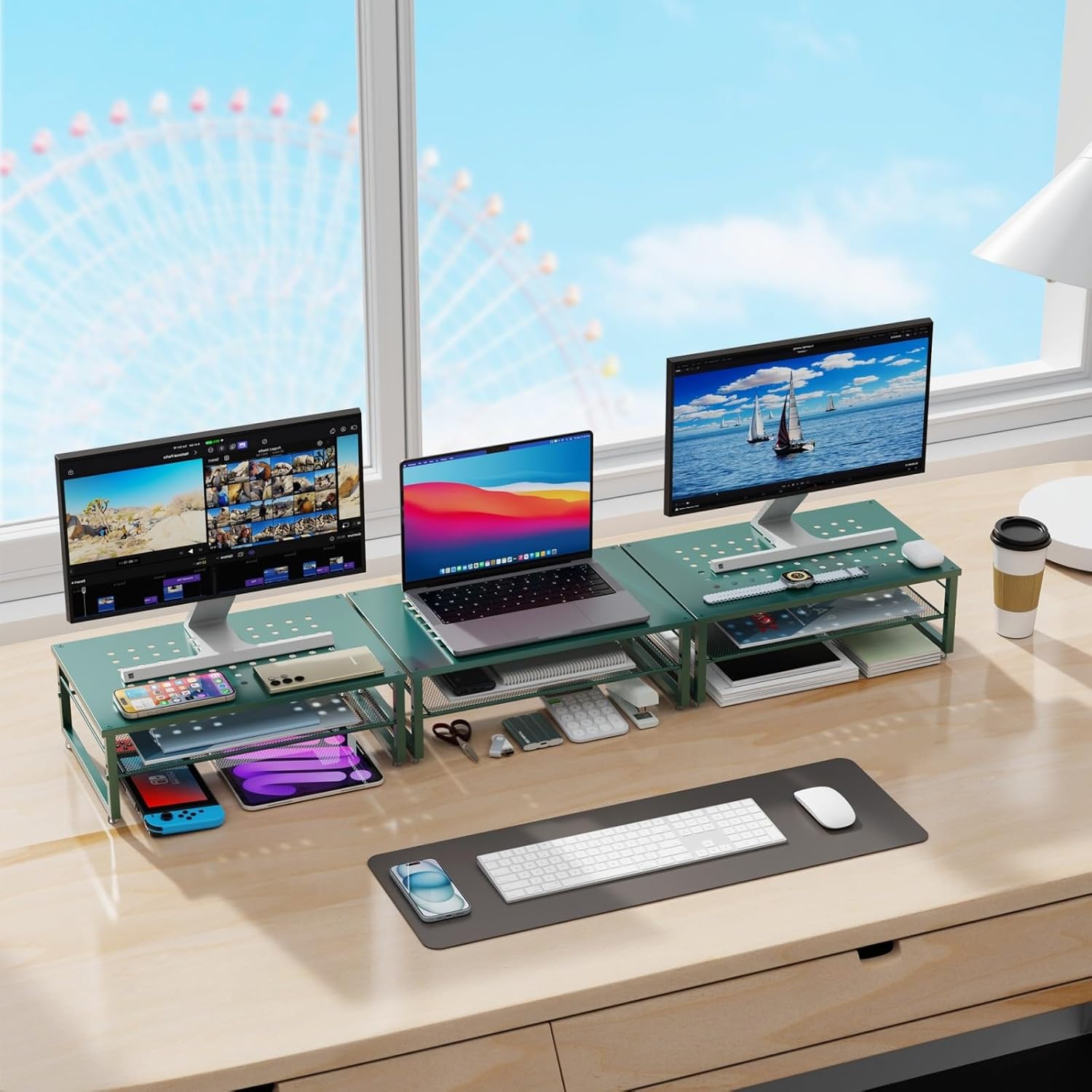 gianotter 2-Tier Metal Monitor Stand Riser, Desk Organizer for Monitor, Office Desk Storage Organizer for Office Supplies (Dark Green)