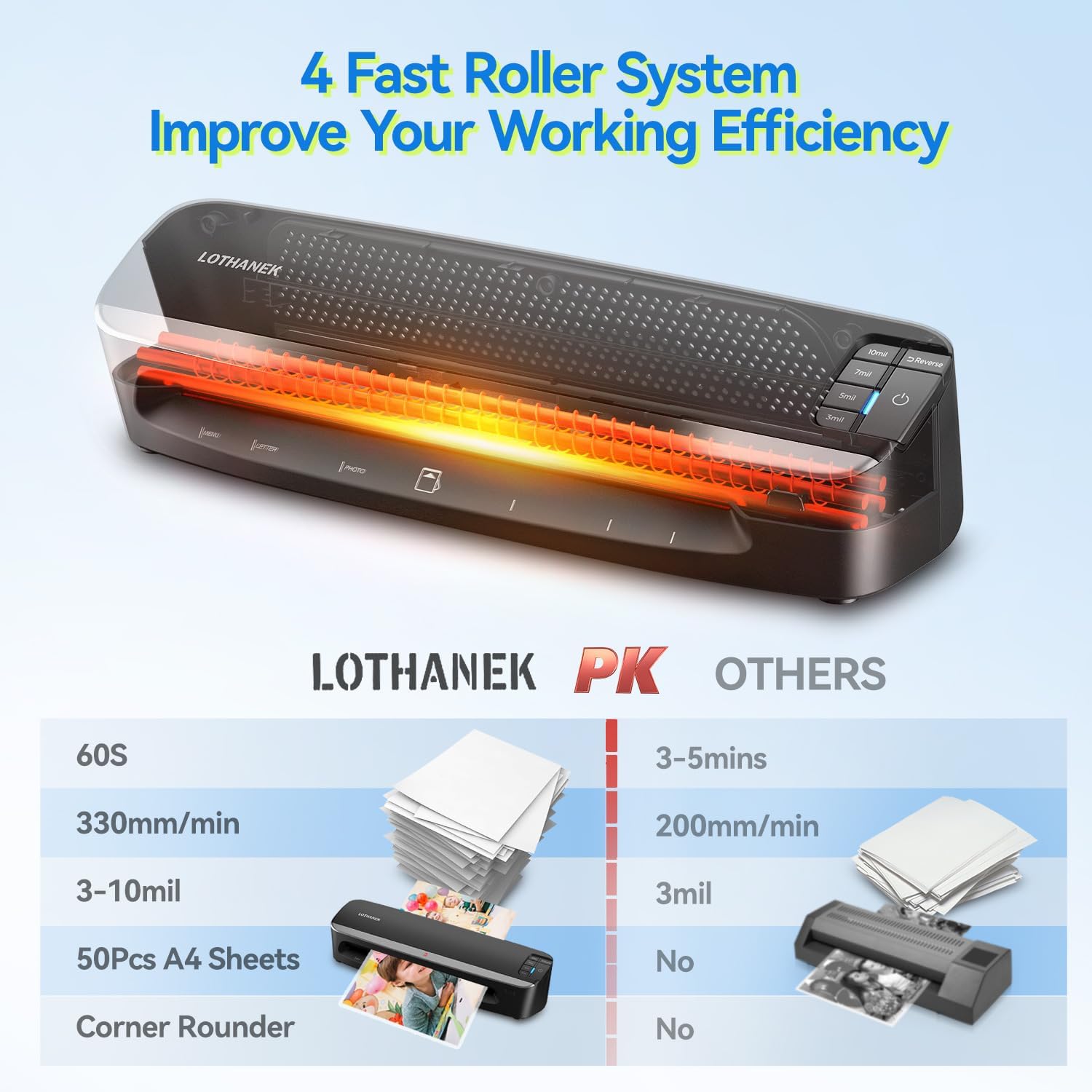 - 【Enhanced 4-Roller System with Quick Lamination Speed and 60-Second Warm-Up Technology】: Featuring a high-quality 4-roller system, this laminator heats up in just 60 seconds and laminates at a speed of 330mm/min, ensuring efficient and quiet operation, ideal for professional use.