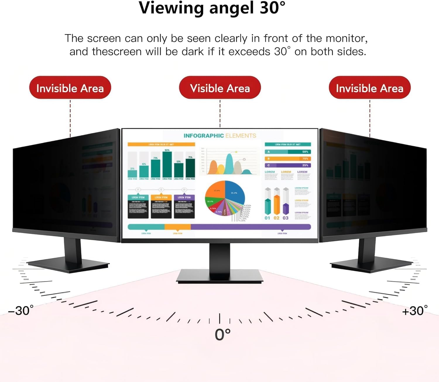 - 【Superior Privacy 】- the content directly in front of the screen (within +-30° angle) is visible. Premium Computer privacy screen filter keeping your important information confidential and protects sensitive information, making it ideal for use in high-traffic areas. It uses revolutionary micro-louver technology. Anti-Scratch Technology.