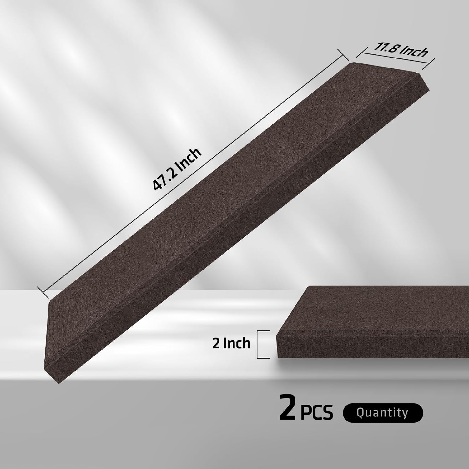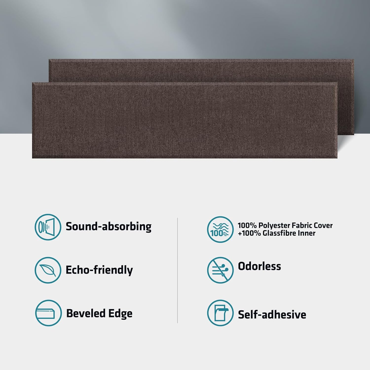 UMIACOUSTICS 2 PCS Fiberglass Acoustic Panels, 48x12x2 Inches Sound Absorbing Panels, Self-adhesive Sound Proof Panels for Studios, Office, Home Theater. Coffee-Colored
