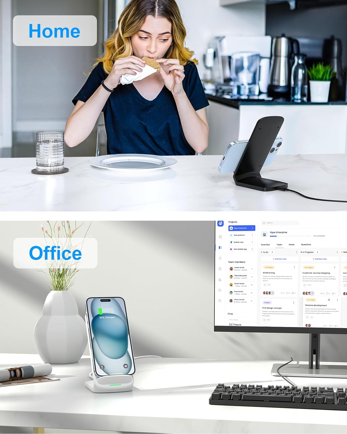 - [Safe & Reliable] Features internal safeguards against overcharge, overcurrent, overvoltage, and overheat, we ensure ultimate safety for your smartphone, anti-slip bottom silicone rim and raised support give extra stability for any desk surface