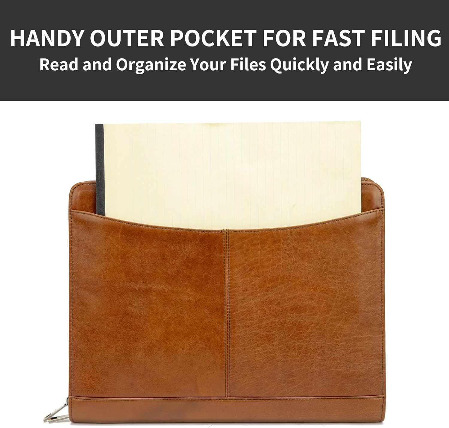 - Large Capacity for More Papers: The leather portfolio is thick with enough room and multiple pockets so you can carry more files and paper inside. Friendly to store paper and easy to close without bulges. The dual YKK zippers enclosure makes it smooth to zip. No more worry about damaging paper or stuck zipper.