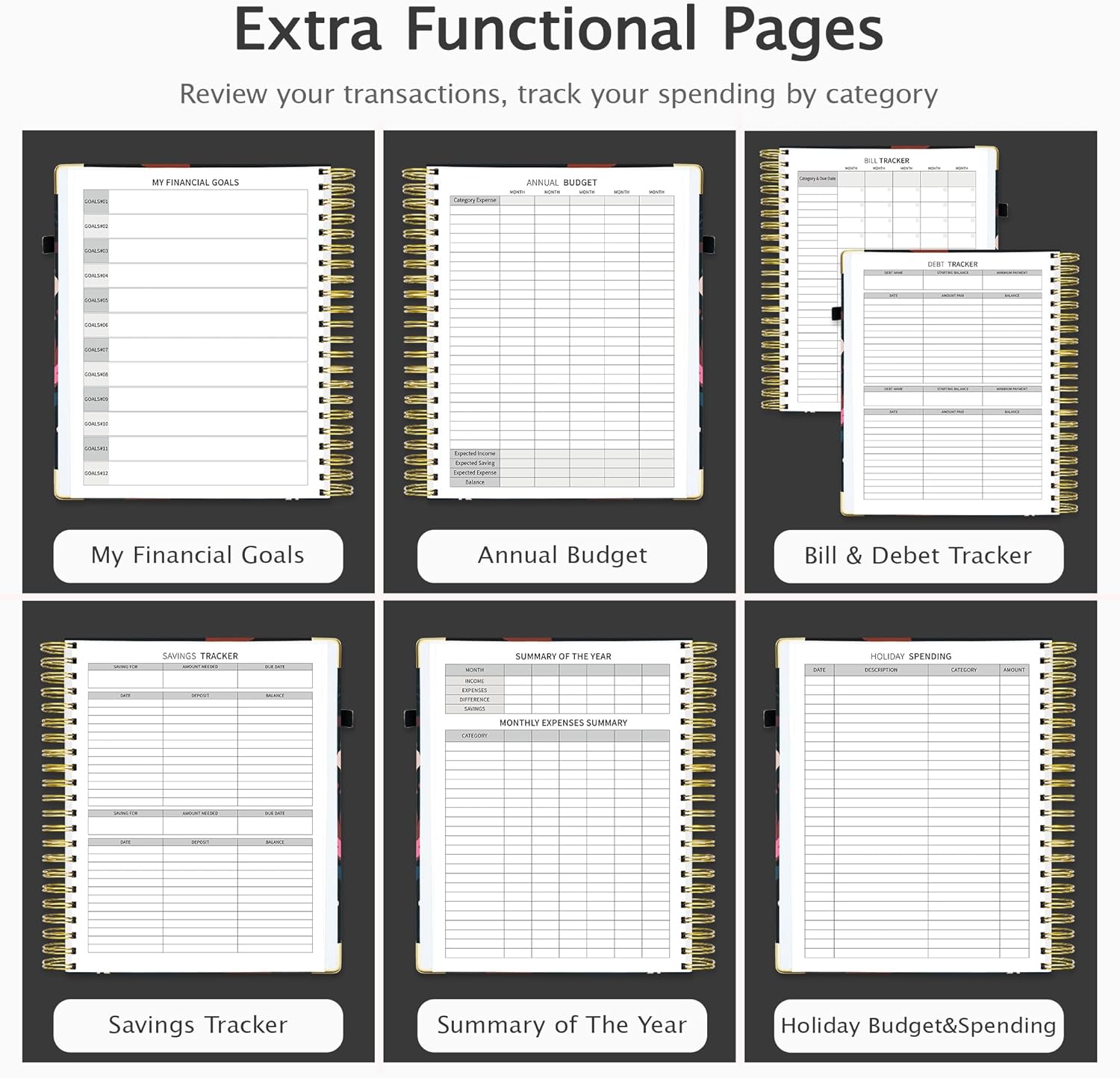 - Achieve Your Financial Goals Easily:Set your annual financial goals and budget plan, then track monthly & daily expenses by category and summarize monthly achievements though monthly budget review page.