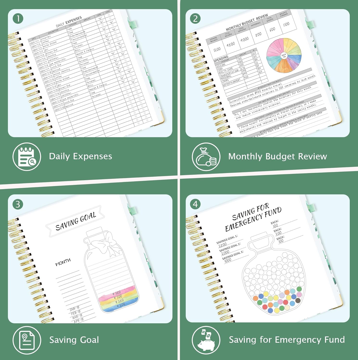 Ospelelf Undated Budget Planner with Expense Tracker and Bill Organizer Large Spiral Bound Monthly Account Planners to Take Control of Your Money 12 Months Green