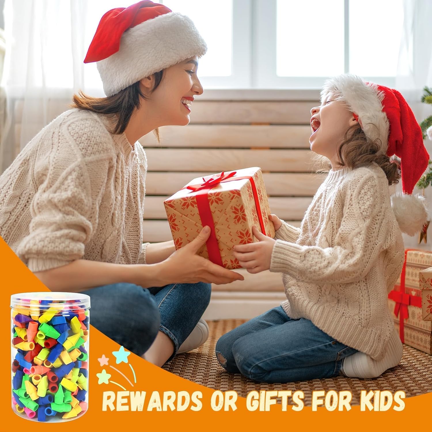 - The color of eraser caps for pencils are interesting assorted, most kids or students like it, it's a good choice as a prize or gifts on Birthday,Valentine's Day,Christmas day,or on other special day .