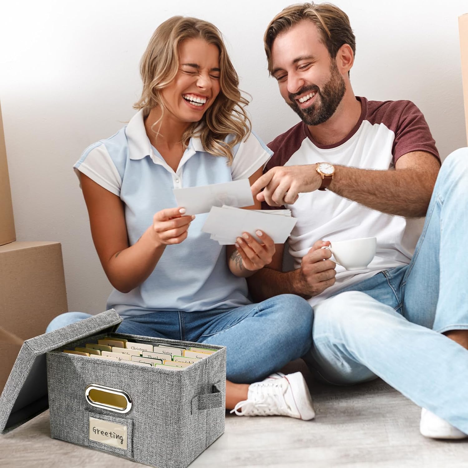 Vienrose Greeting Card Organizer 2 Pack, Storage Box with 20 Adjustable Dividers, Foldable Organizer Box Holds over 150 Cards, Storage Stickers Recipes Photos Envelopes Bills Vinyl Records, Grey