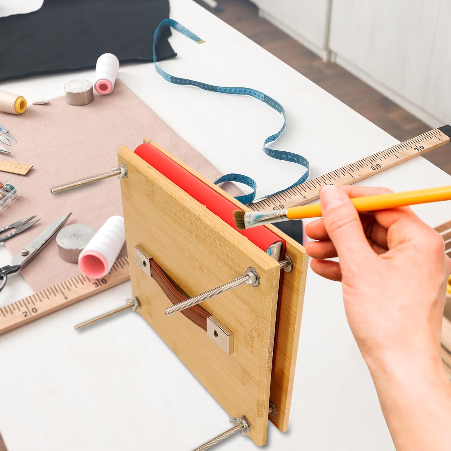 - EXTRA LARGE SIZE : With it's substantial dimensions of 9.8x7.87", our wood bookbinding press accommodates books of various sizes. The added leather grip handle improves handling, making it easier to move and position, thereby boosting its portability.